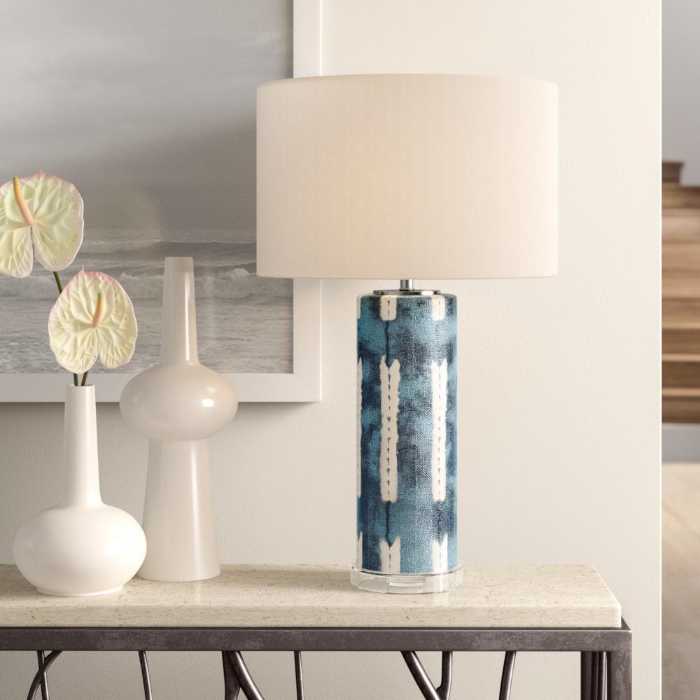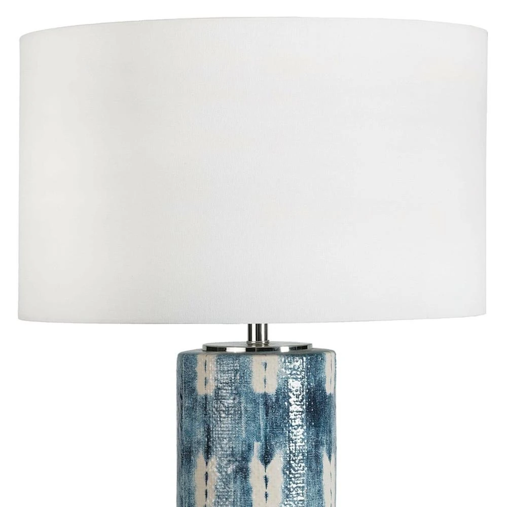 Edie Coastal Linen Shade Blue Ceramic Table Lamp