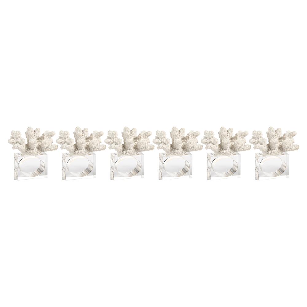 Lauren Coastal Beach Clear Napkin Rings with White Coral Detail II - Set of 6