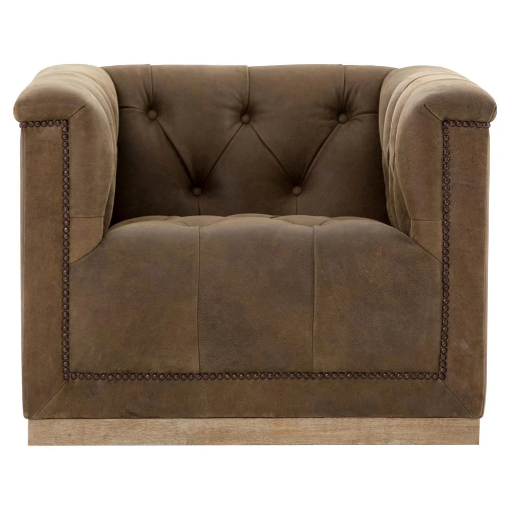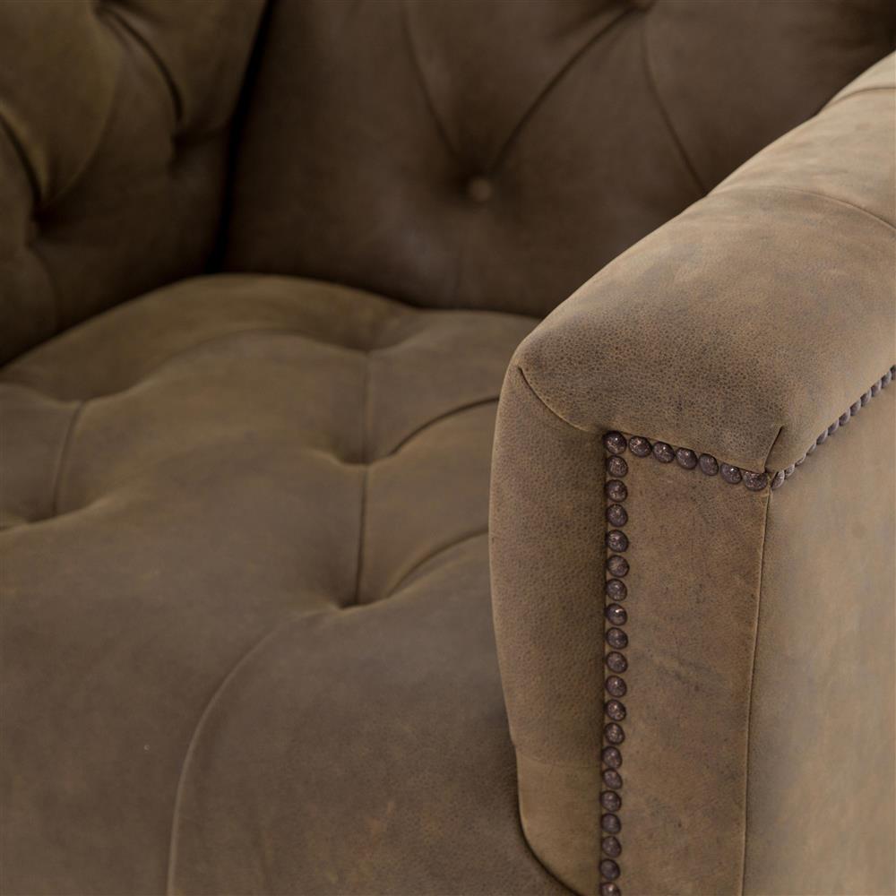 Sink into the lush Emmy club chair. This eye-catching piece features top-grain leather upholstery in a distressed brown color with a gr ... more