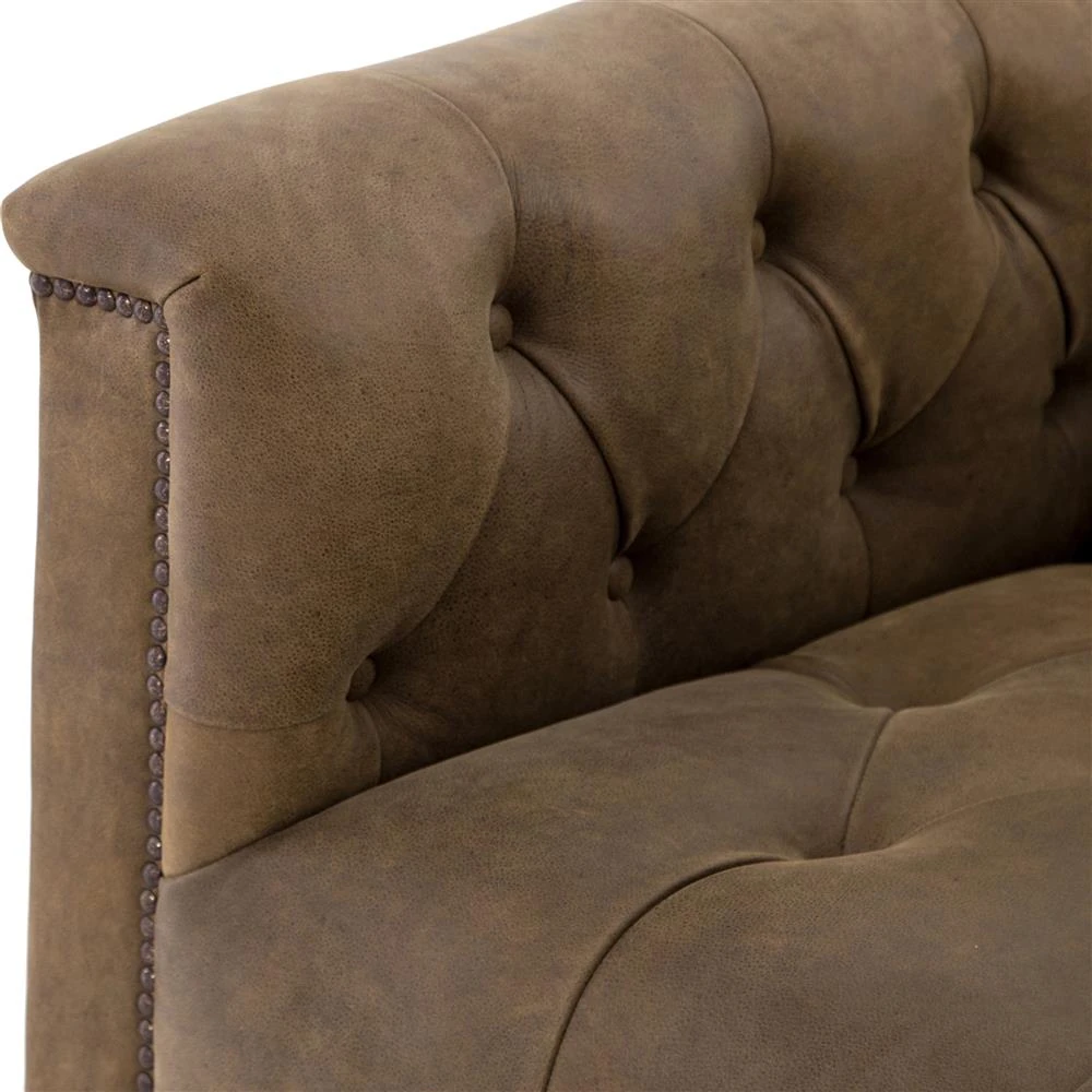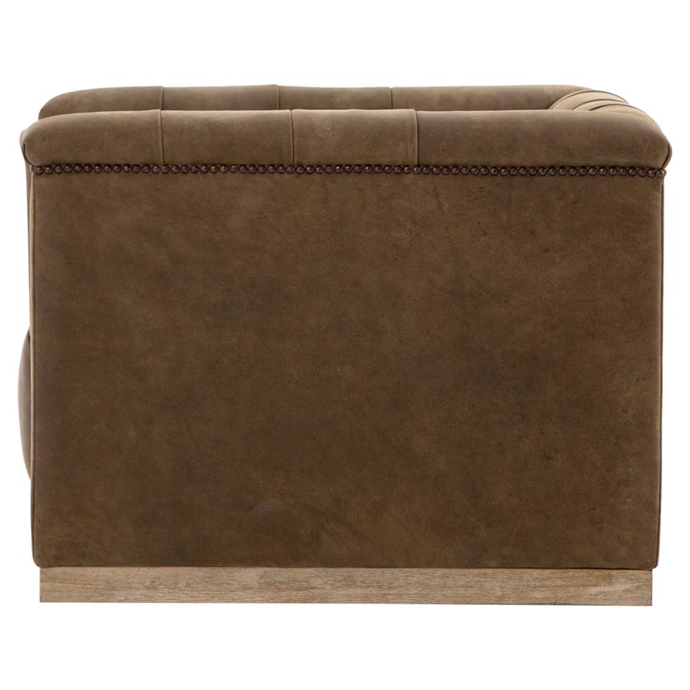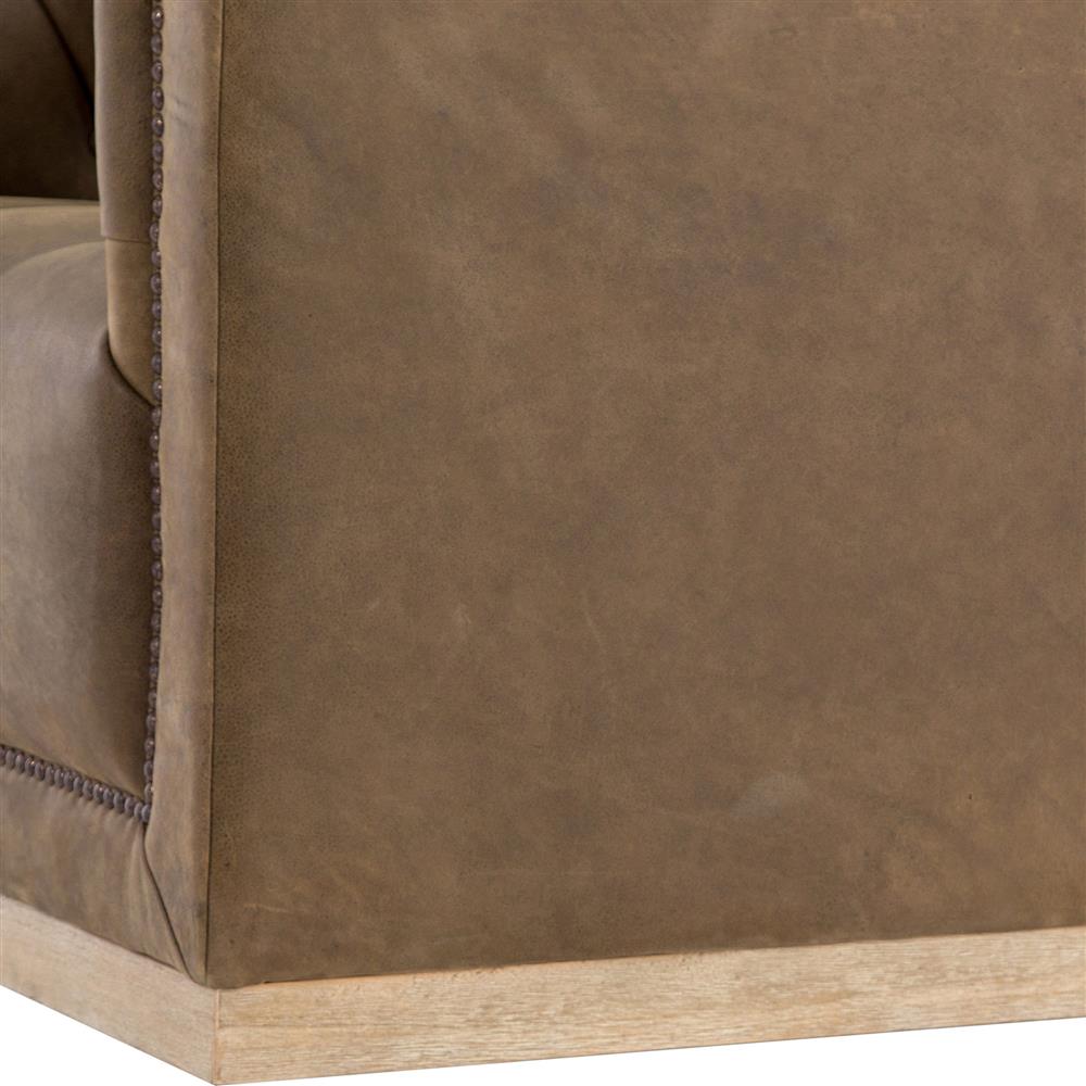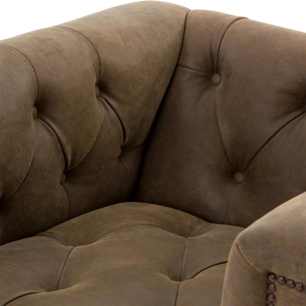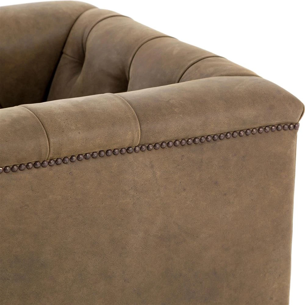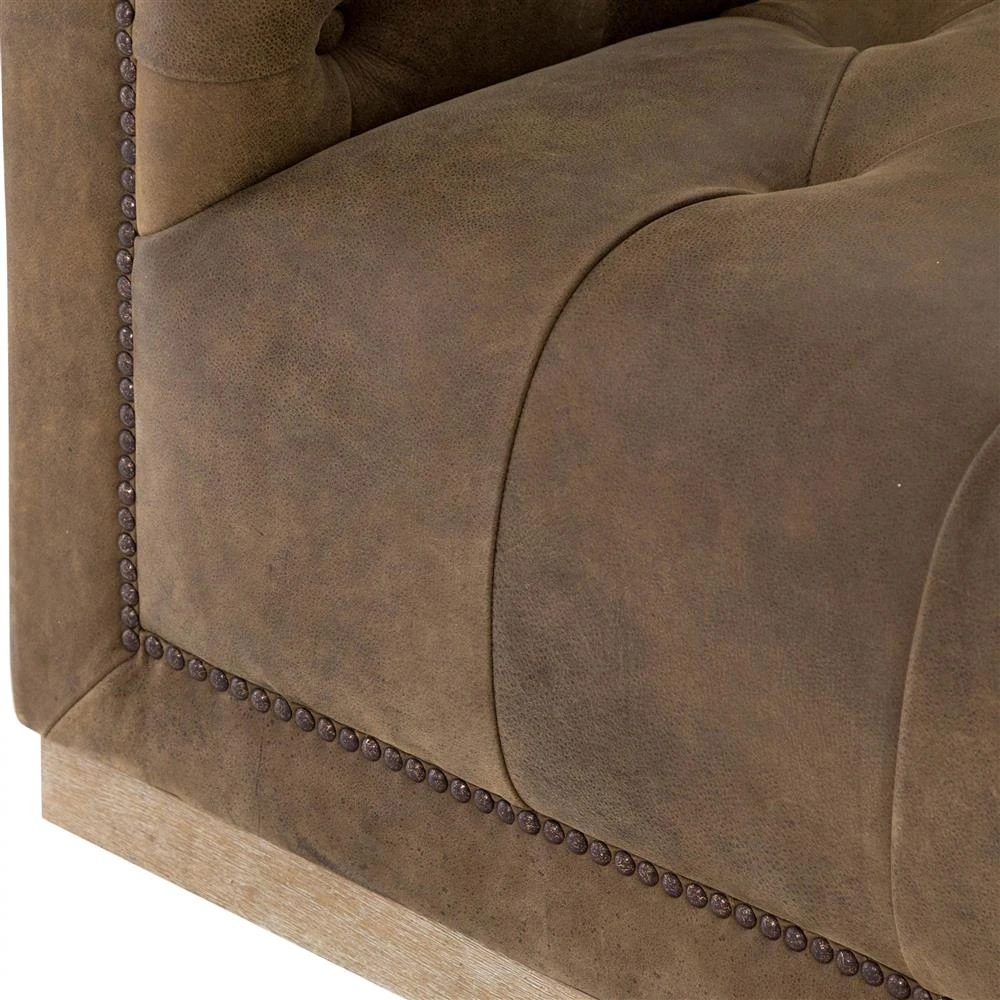 • Features nailhead trim, a tufted seat and back, and smooth swivel base