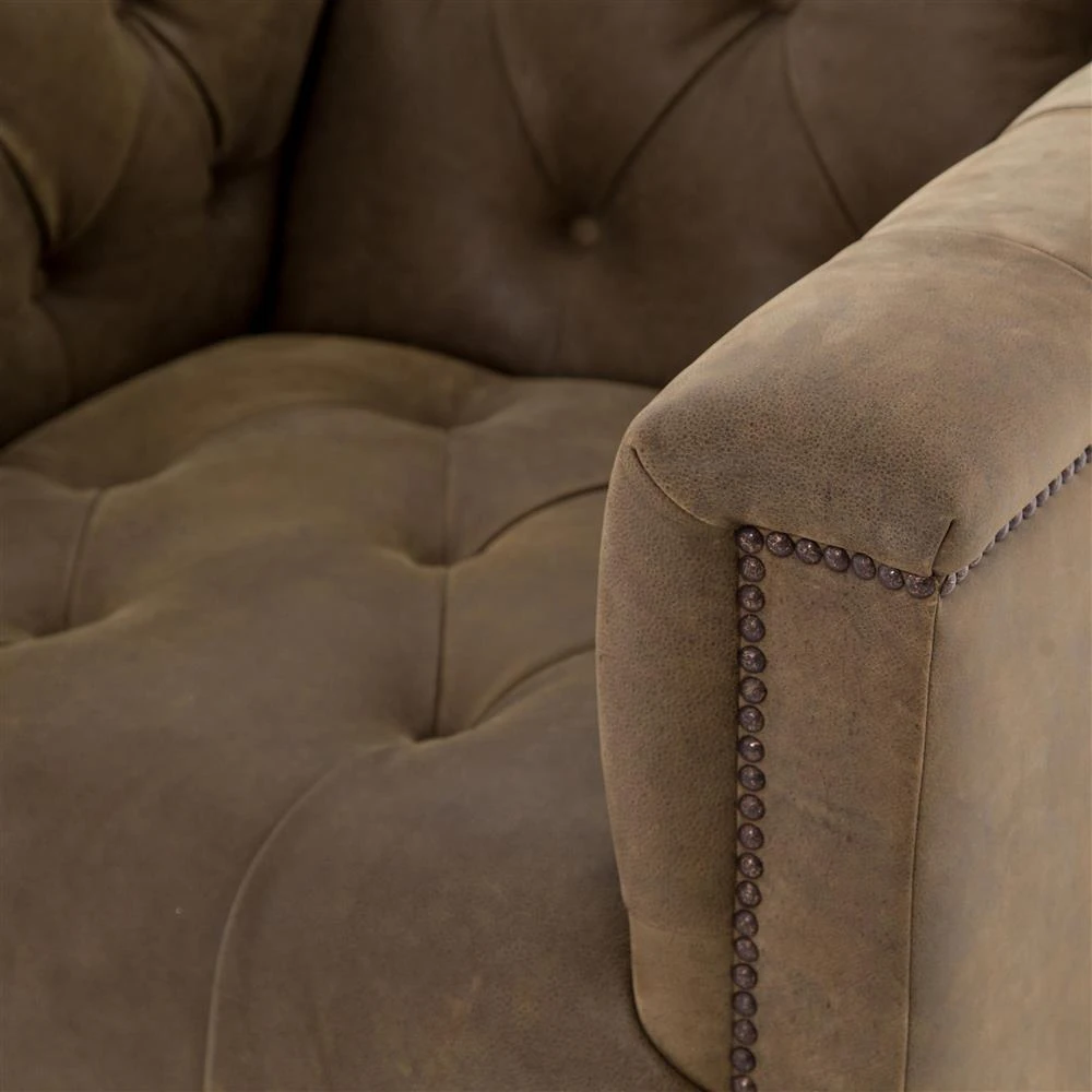 Emmy Rustic Lodge Dark Brown Leather Tufted Nailhead Trim Swivel Club Chair