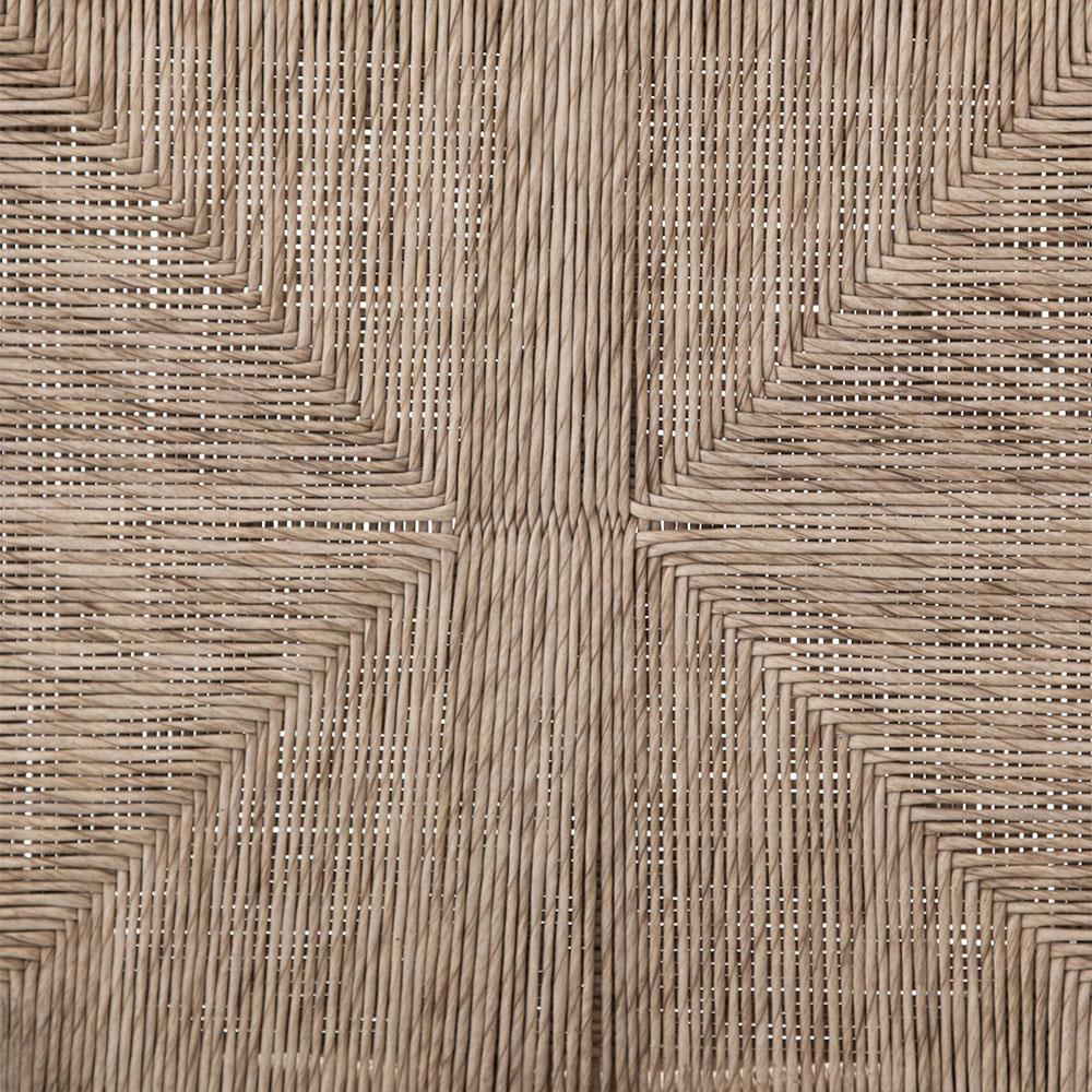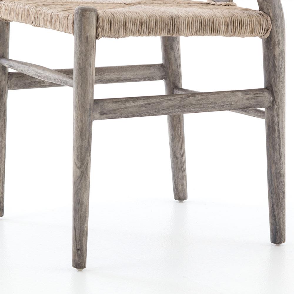 • Cheryl Modern Light Grey Cushion Woven Rope Natural Teak Outdoor Dining Arm Chair|Kathy Kuo Home
