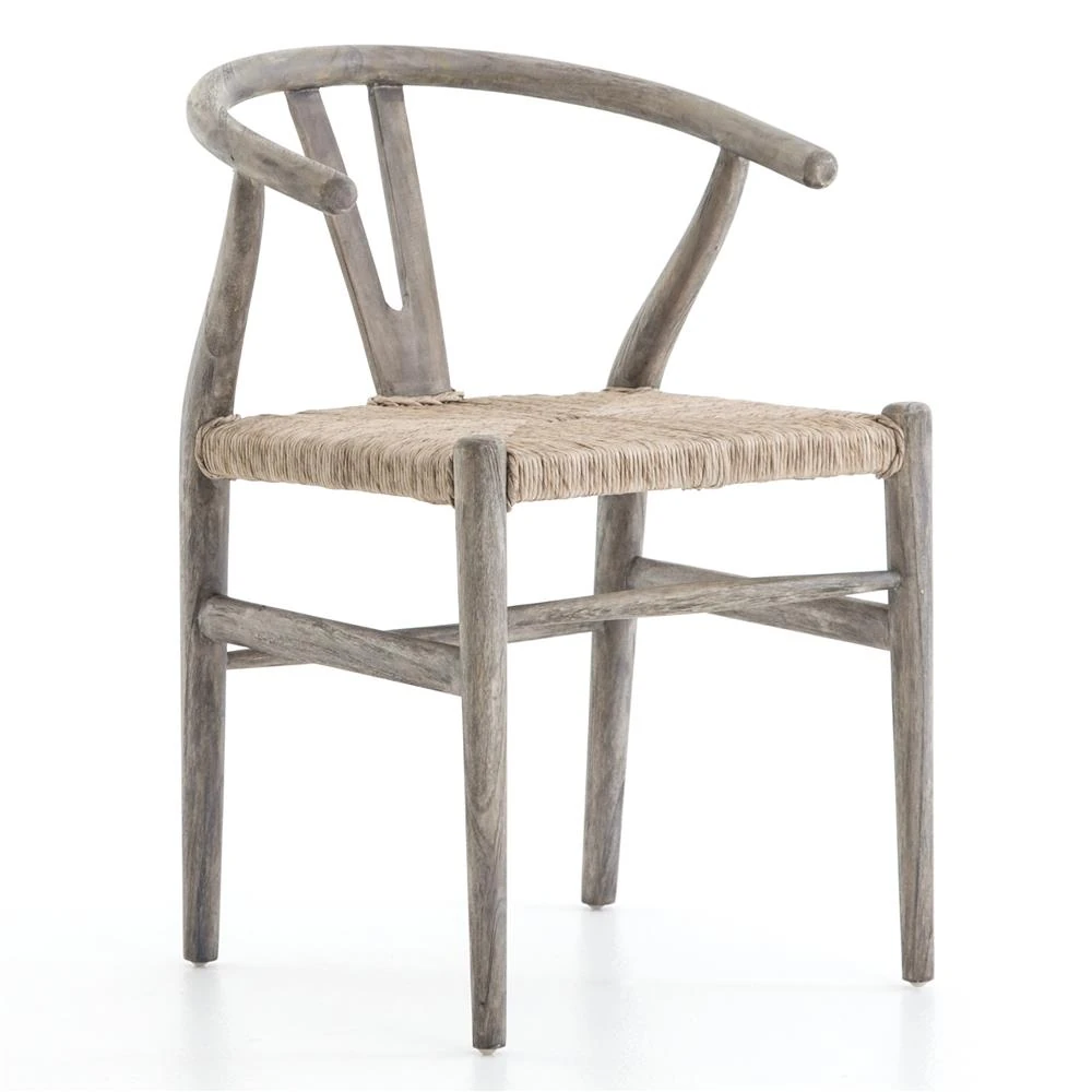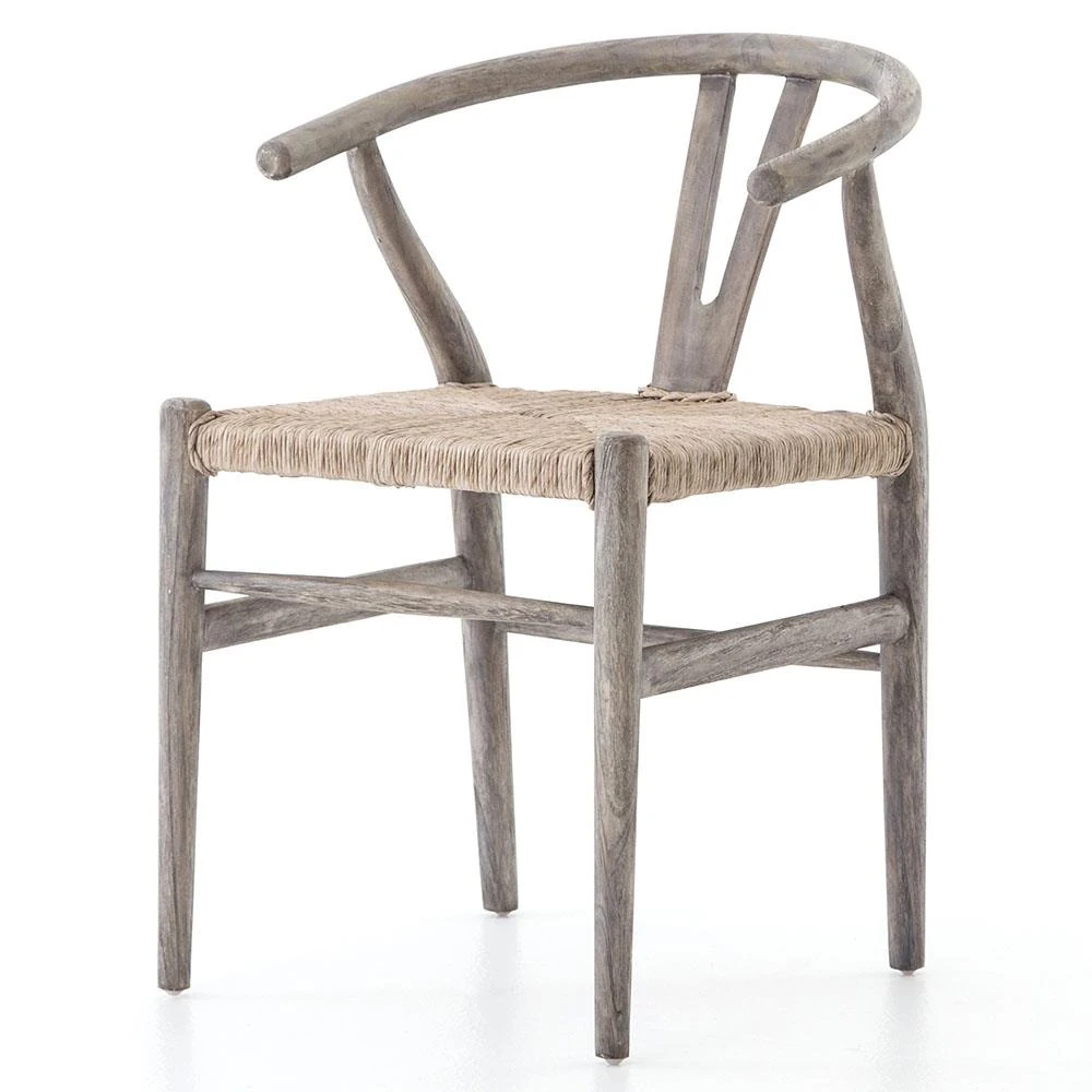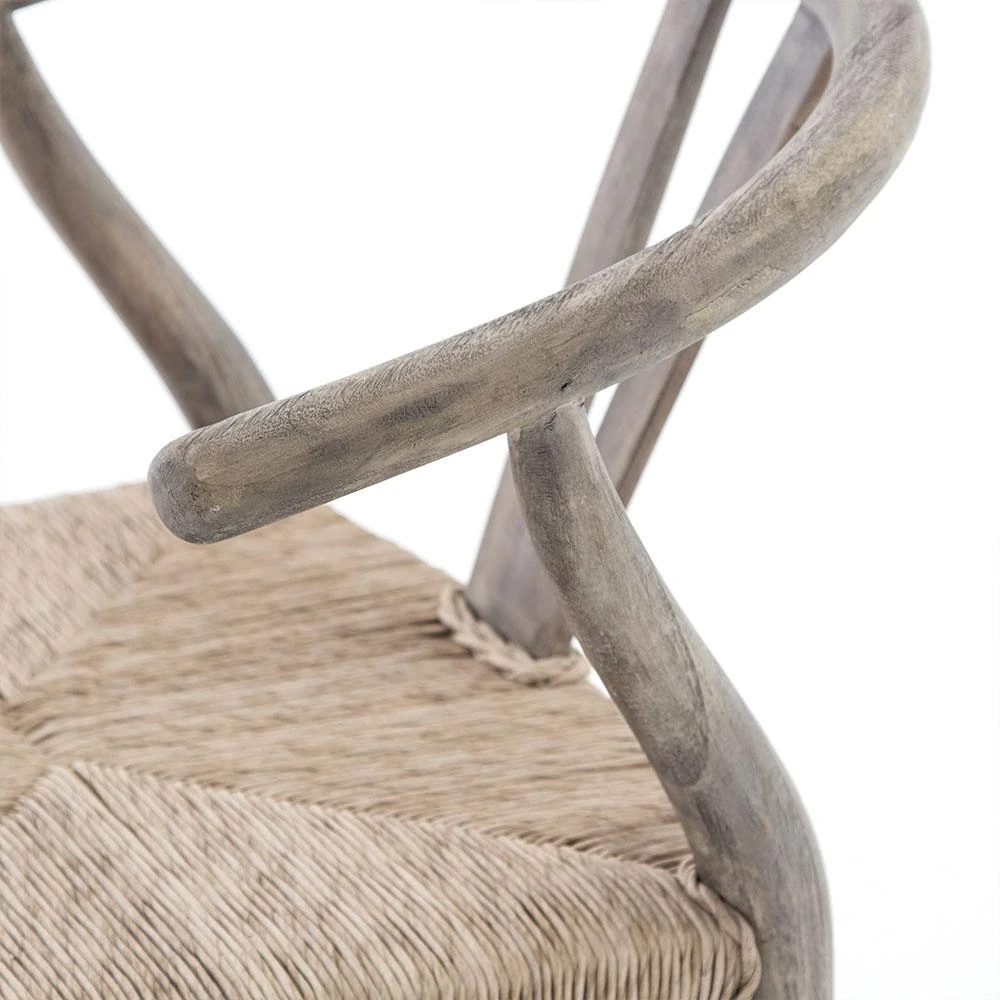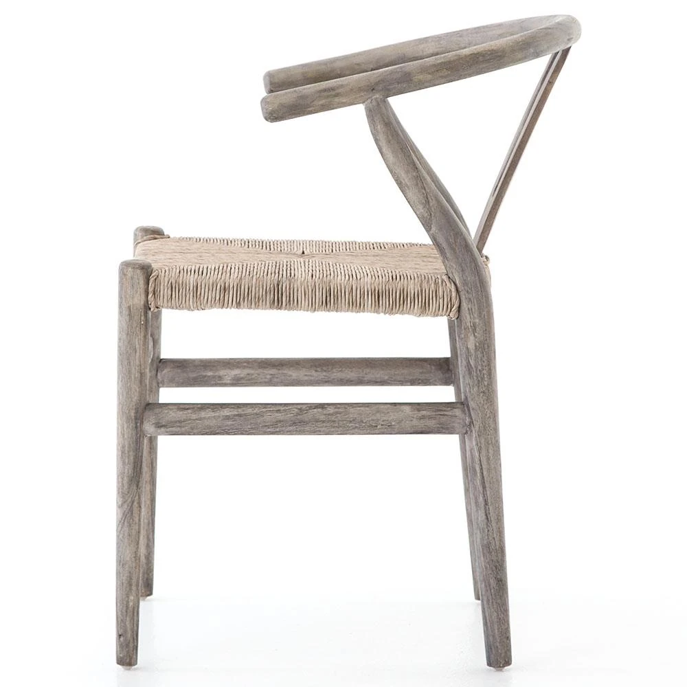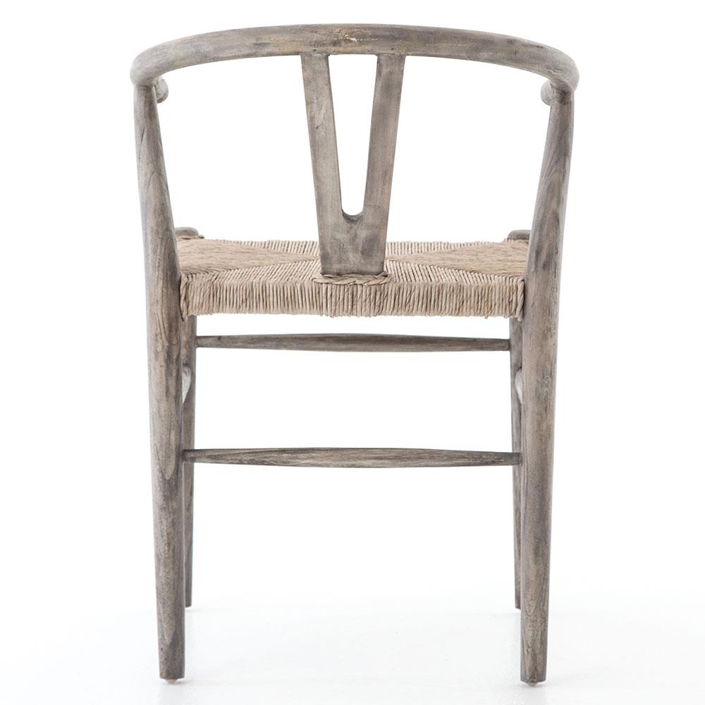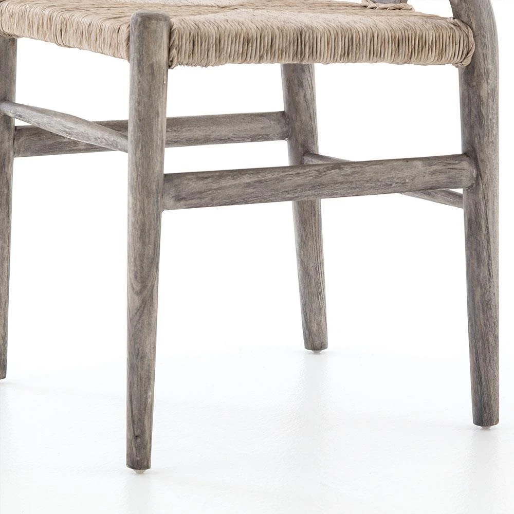 Cheryl Modern Light Grey Cushion Woven Rope Natural Teak Outdoor Dining Arm Chair