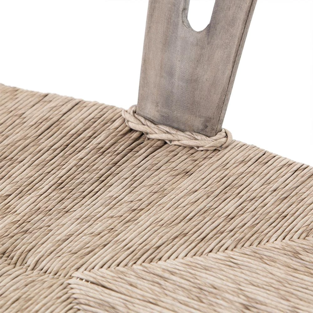 Wanda Mid Century Modern Grey Teak Woven Wicker Seat Wishbone Outdoor Counter Stool