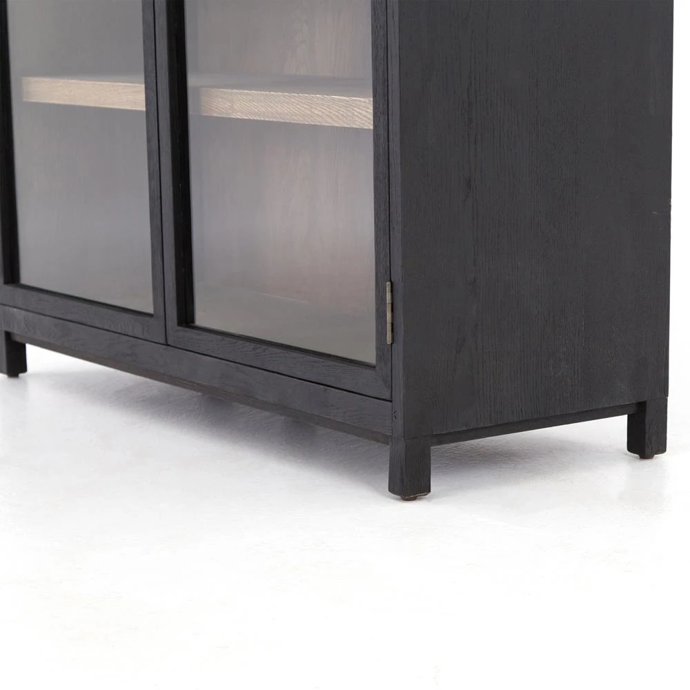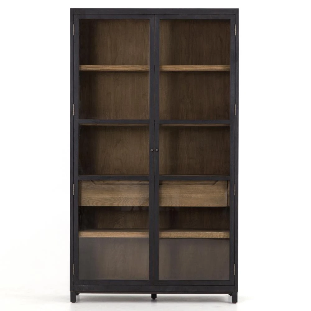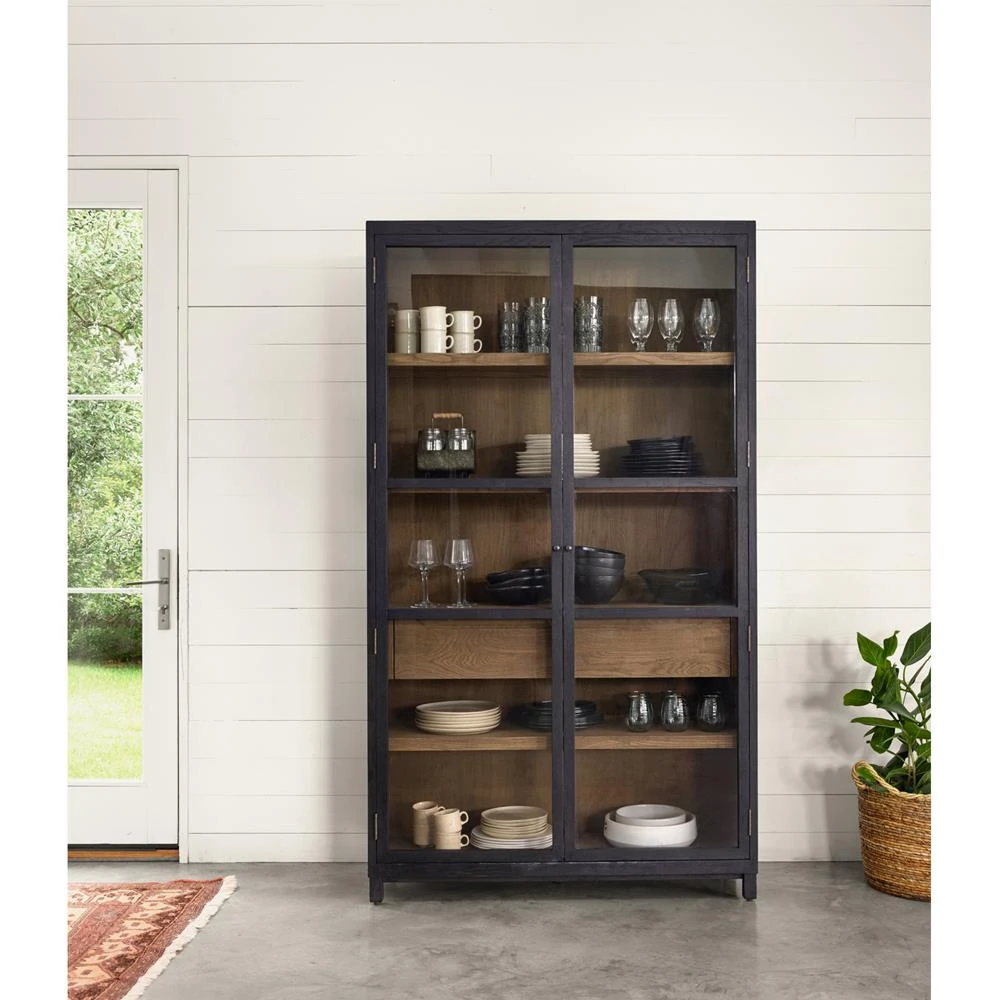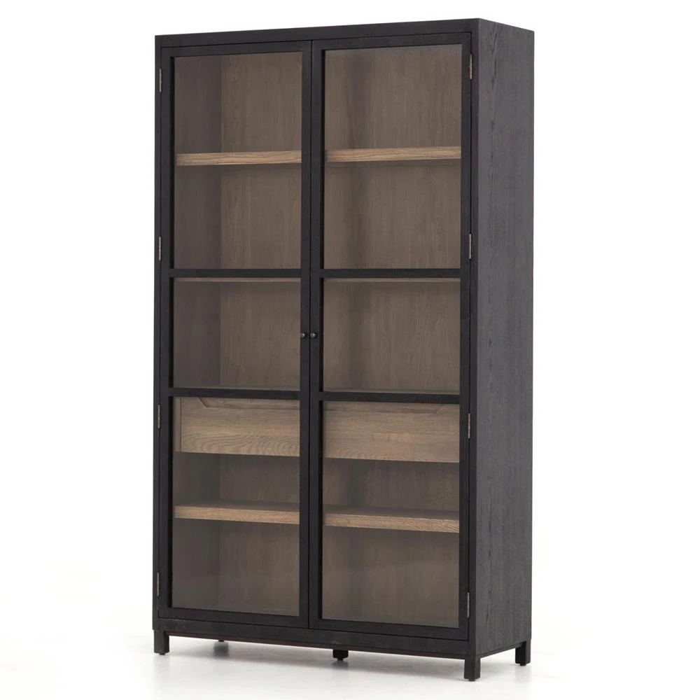 Clarence Rustic Lodge Black Oak Wood Clear Glass Door Display Case