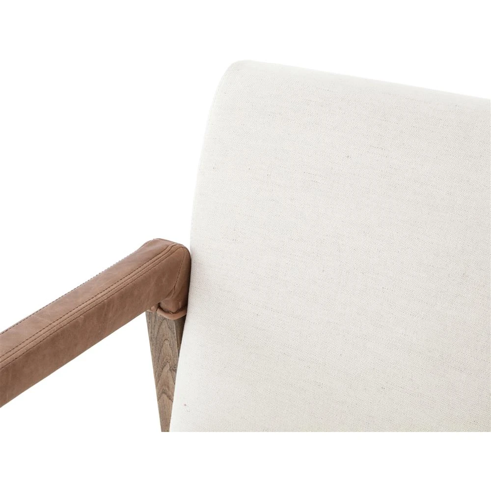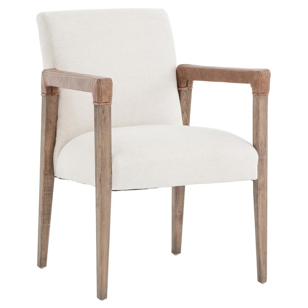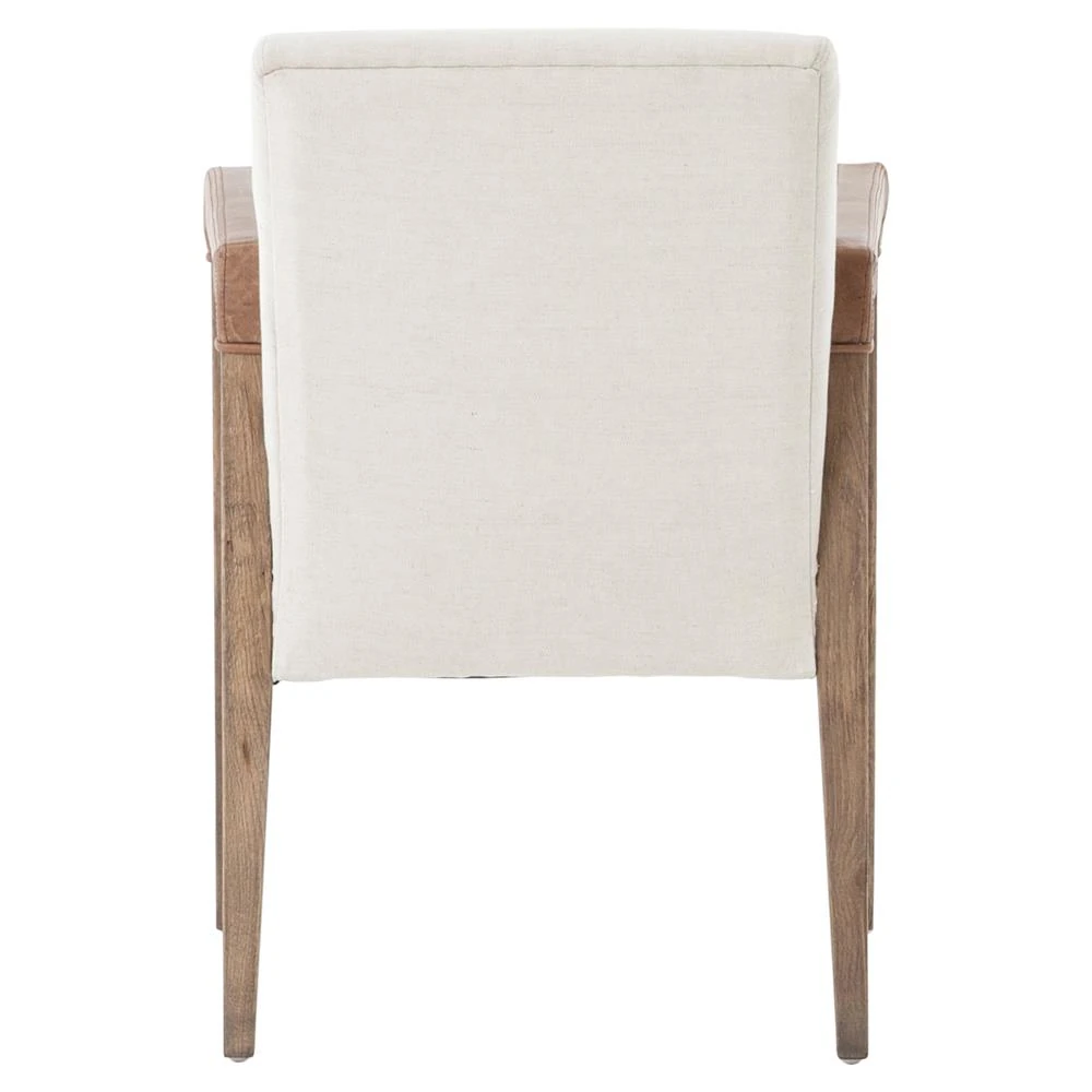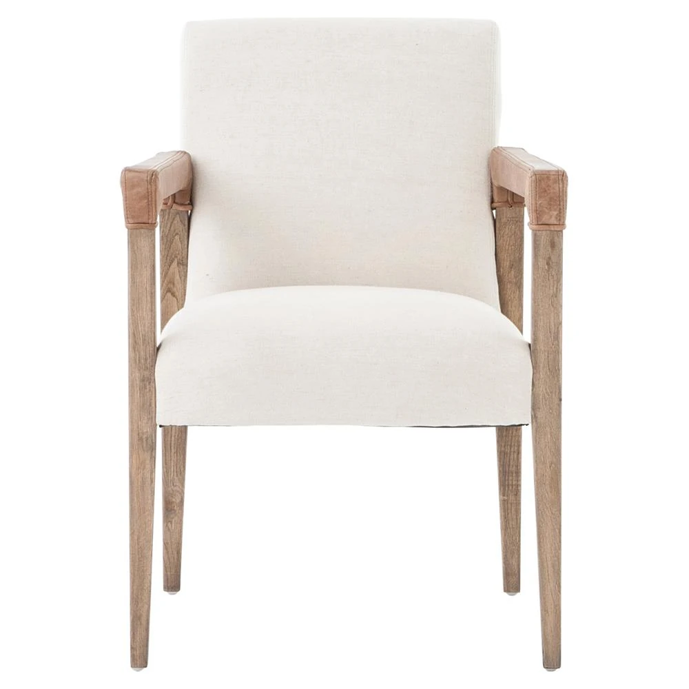 Jolie French Cream Upholstered Brown Oak Wood Leather Wrapped Dining Arm Chair