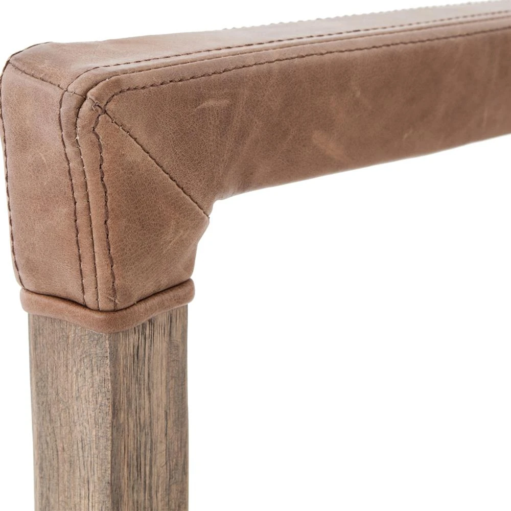 • Ely Rustic Grey Performance Leather Back Brown Wood Dining Side Chair|Kathy Kuo Home