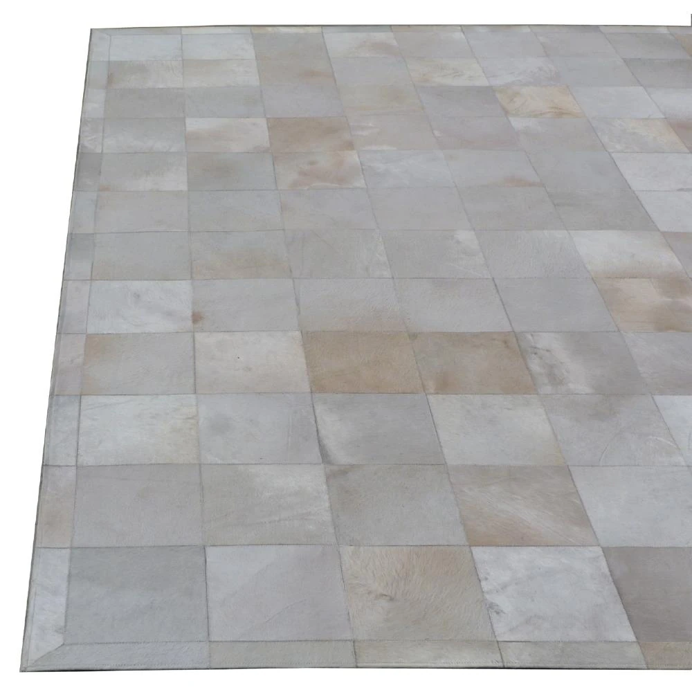 Natural Hide Modern Classic Square Pattern Beige Grey Rug - 5x8