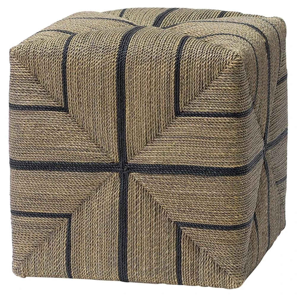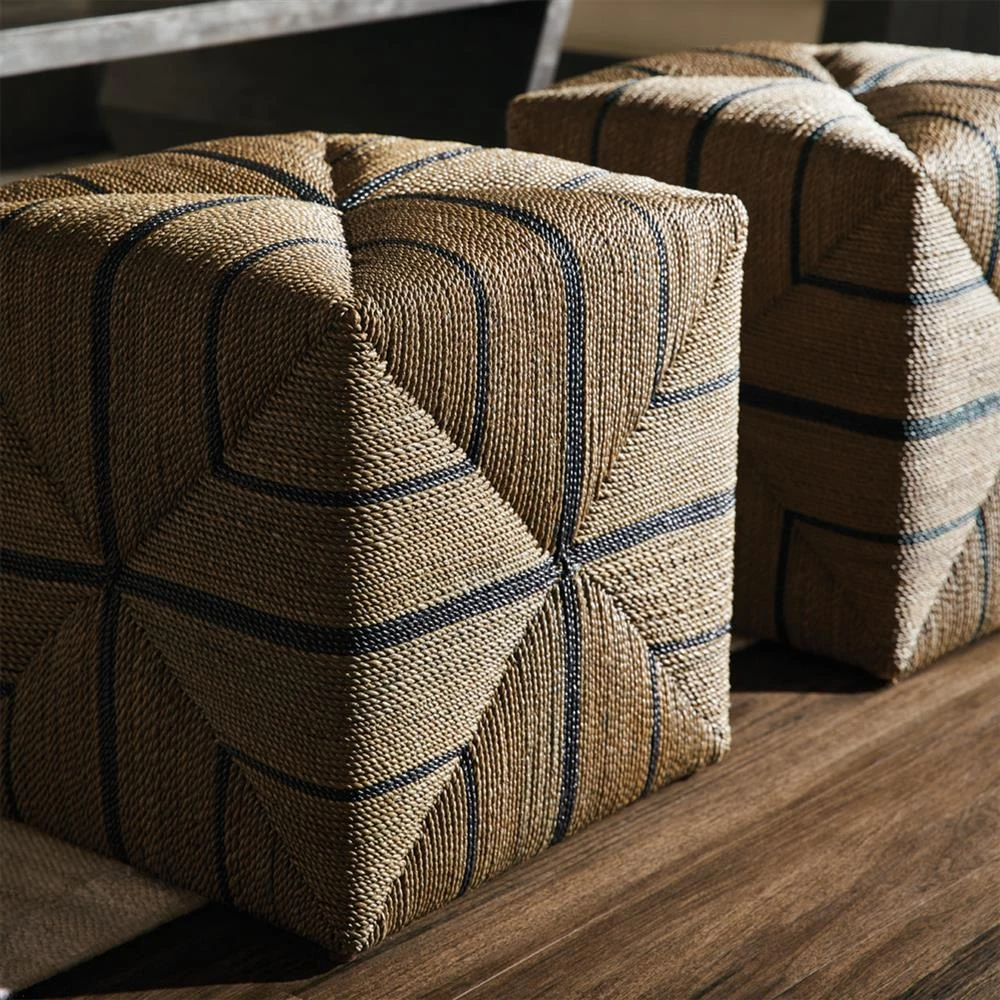 • Wolf Coastal Beach Brown Twisted Banana Leaf Wrapped Cube Ottoman|Kathy Kuo Home