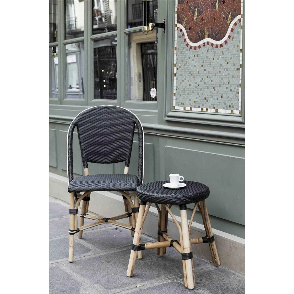 Gene Coastal Beach Black Woven Rattan Dining Side Chair