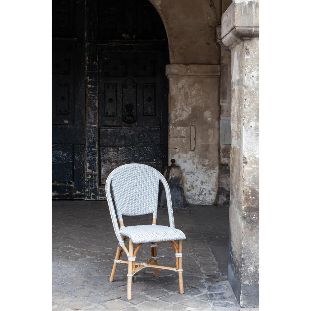 Riona Coastal Beach White Performance Blue Woven Rattan Dining Chair