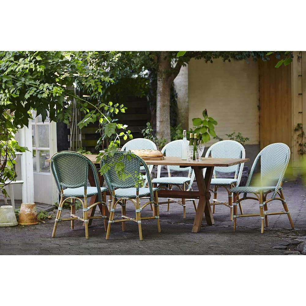 Judy Coastal Beach White Performance Green Rattan Dining Chair