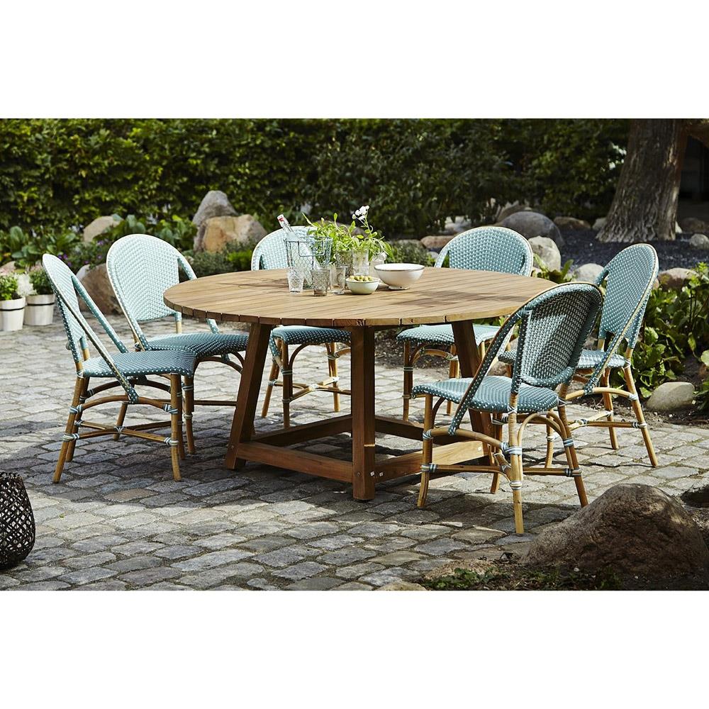 • Bella Coastal Beach Grey Performance Blue Rattan Dining Arm Chair|Kathy Kuo Home