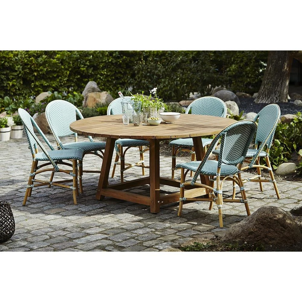 • Bella Coastal Beach Grey Performance Blue Rattan Dining Chair|Kathy Kuo Home