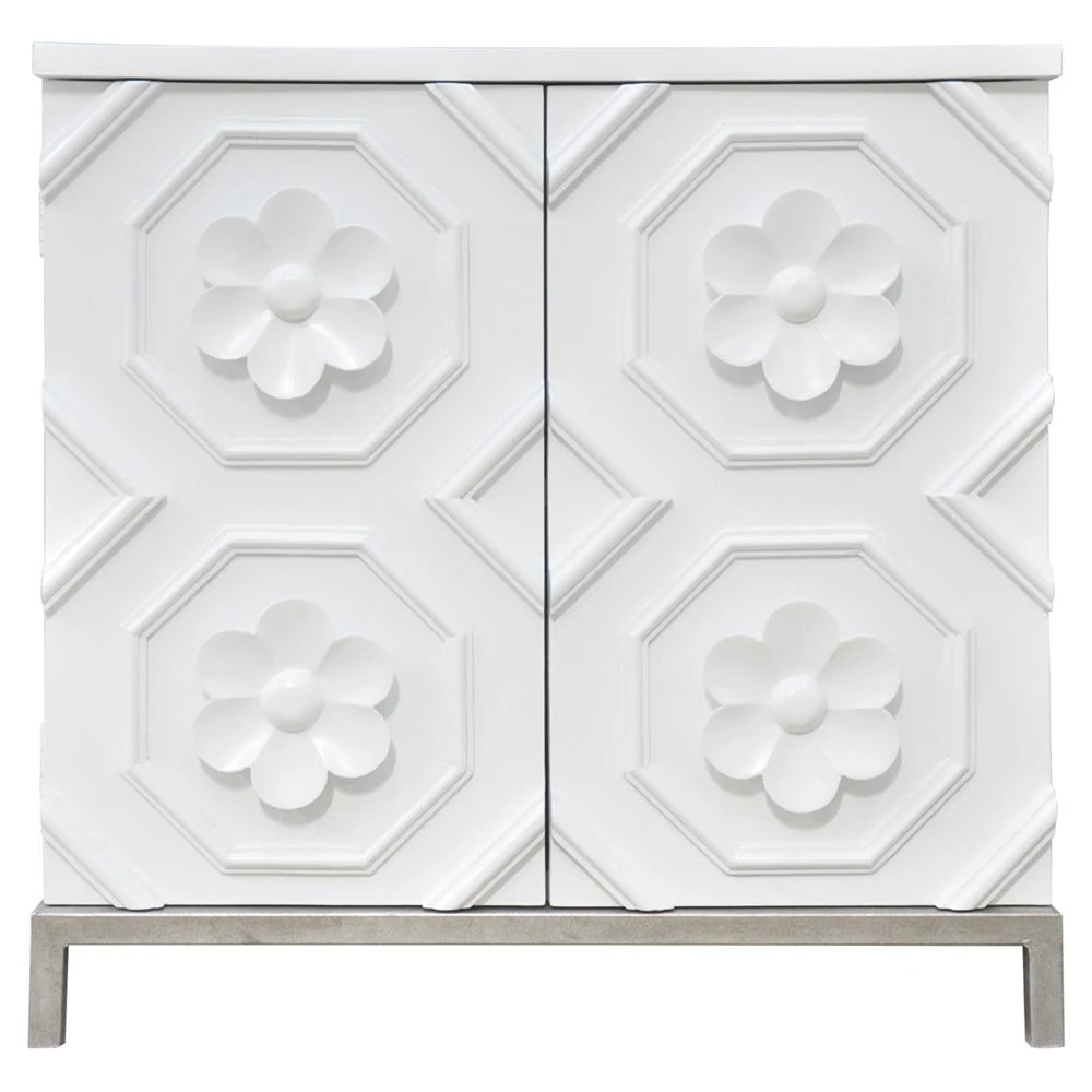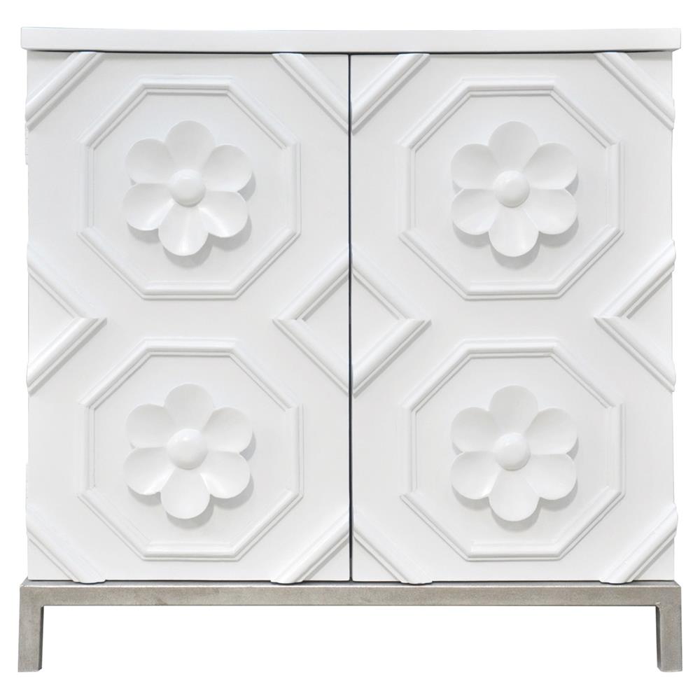 Tyrol Modern White Hardwood Flower Detail 2 Door Nightstand