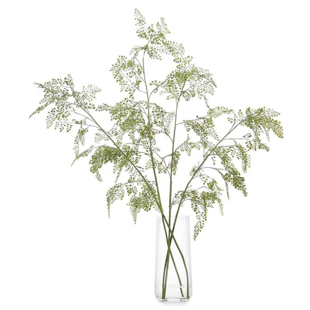 • A narrow vase with branches of maidenhair fronds in faux water