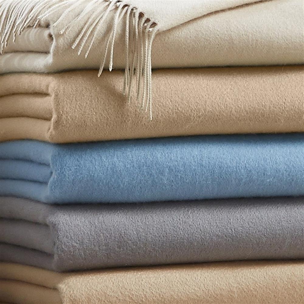 • Taylor Updated Traditional Beige Wool Throw Blanket|Kathy Kuo Home