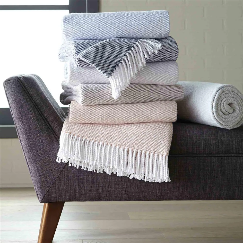 Sferra Modern Pettra Eggshell White Ribbed Lambs Wool Throw Blanket