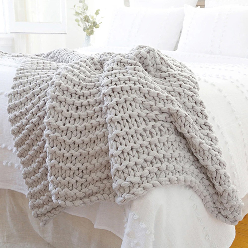Finn Coastal Beach Silver Chunky Knit Throw Blanket
