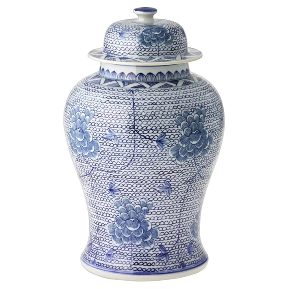 Sam French Country Blue and White Porcelain Chain Temple Jar - Small 16in
