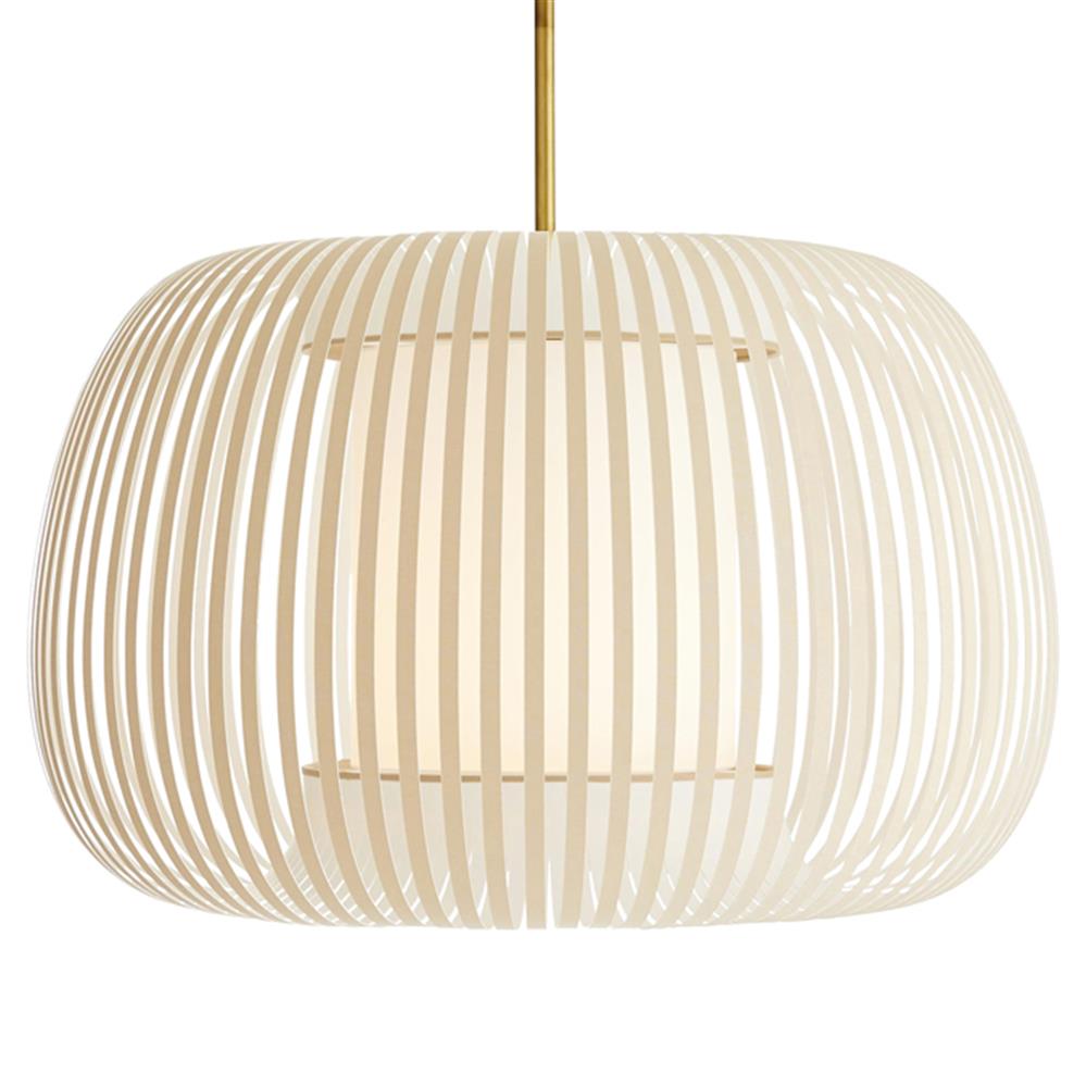 Mia Modern Classic Beige White Banded Shade Gold Antique Brass Pendant
