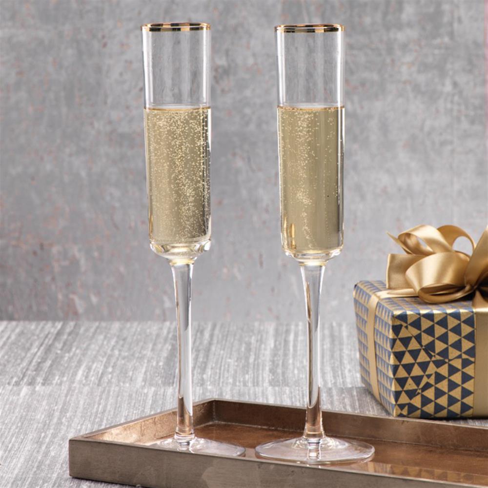 • Grand Royal Gold Rim Crystal Glass Champagne Flute - Set of 2|Kathy Kuo Home