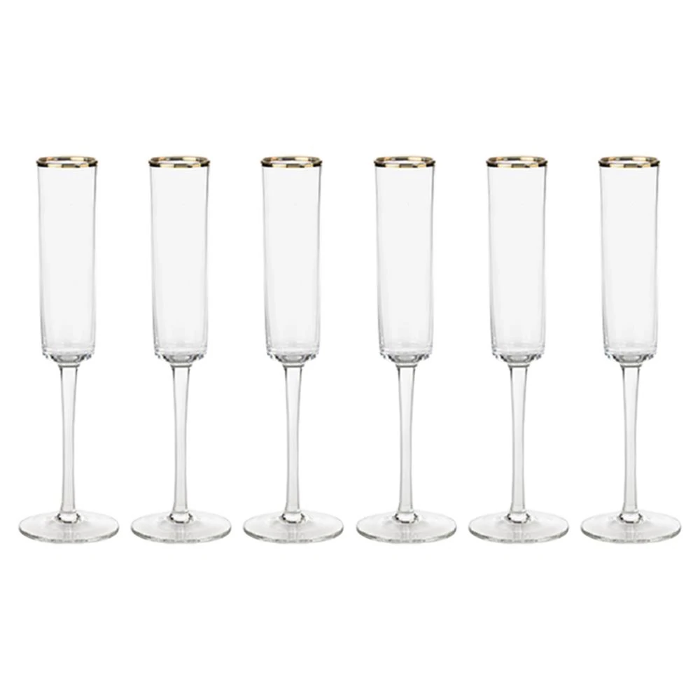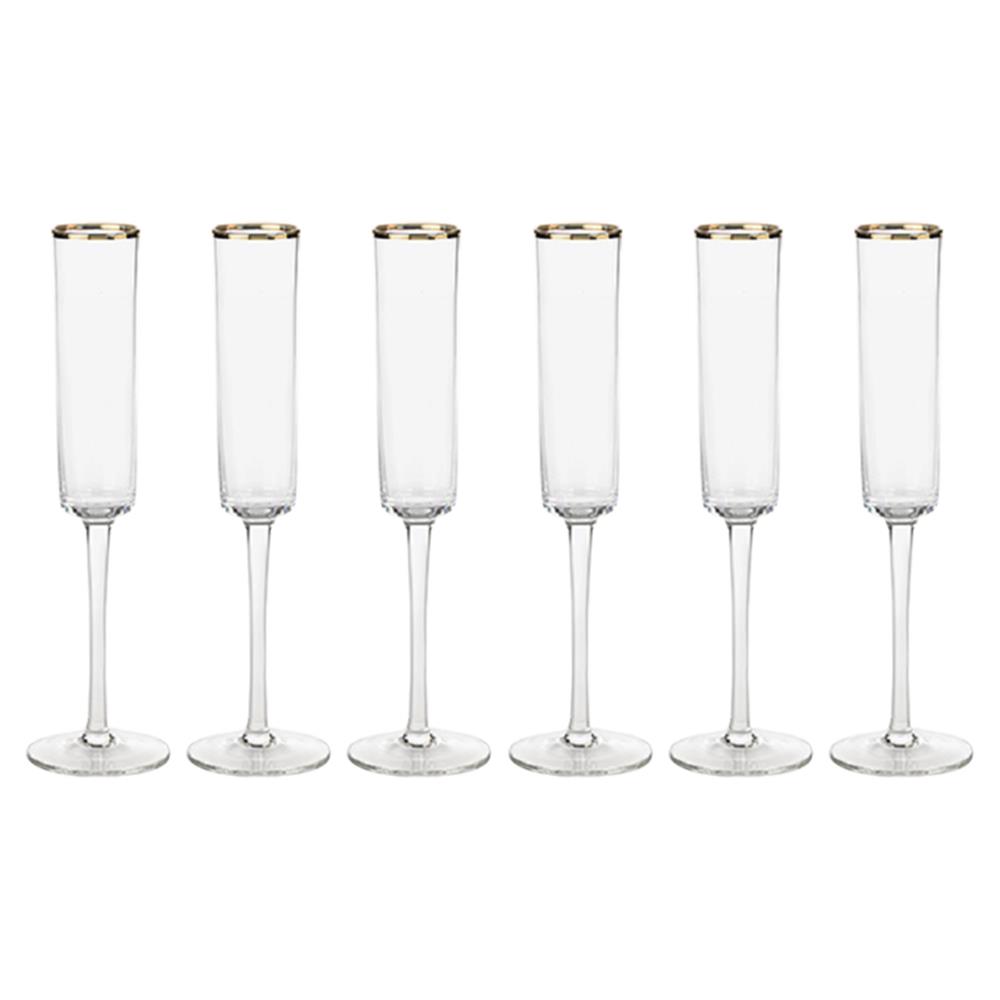 Vince Modern Classic 11.25" Champagne Flutes with Gold Metallic Rim- Set of 6