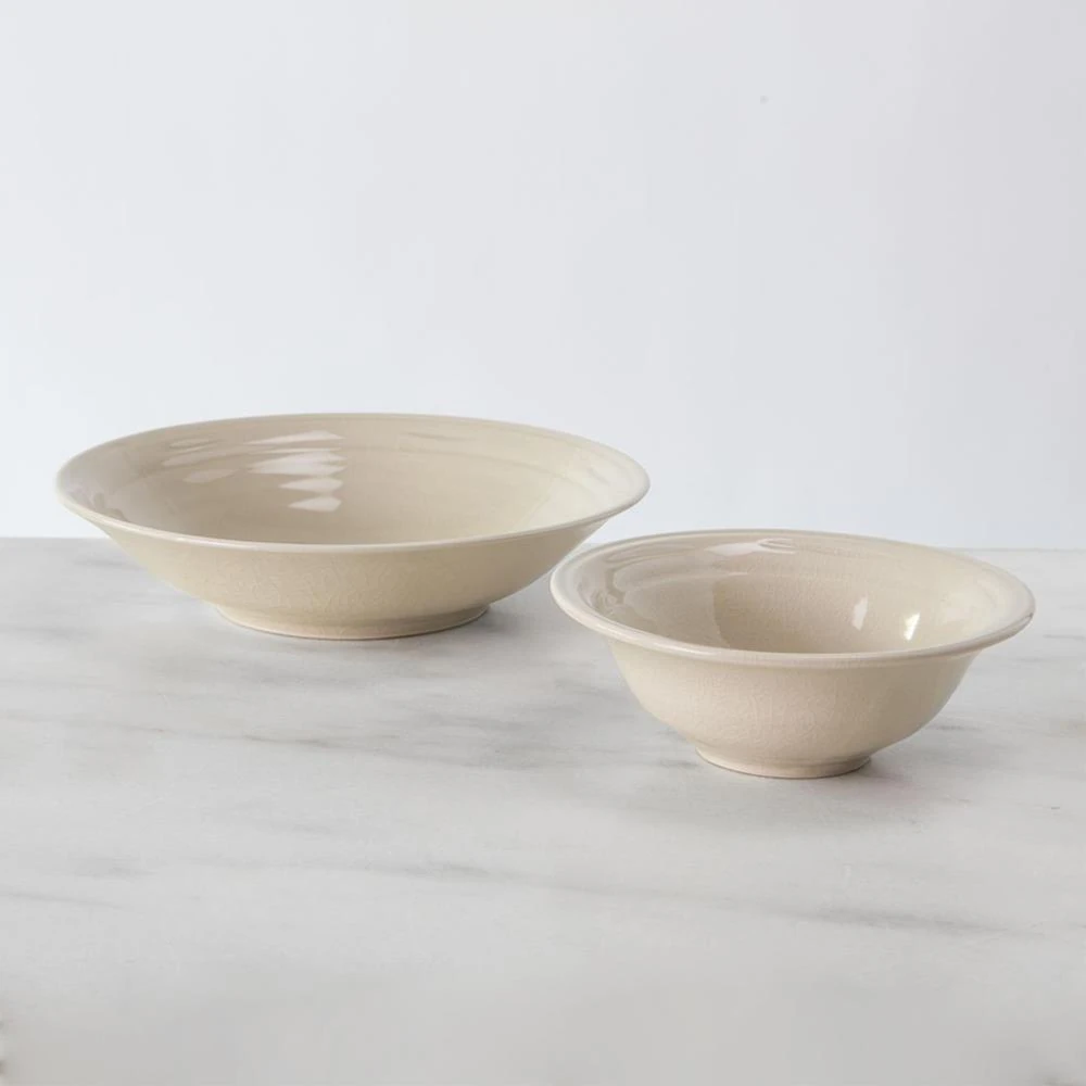 • Dori Coastal Beach Beige Stoneware Seabream Bowl|Kathy Kuo Home