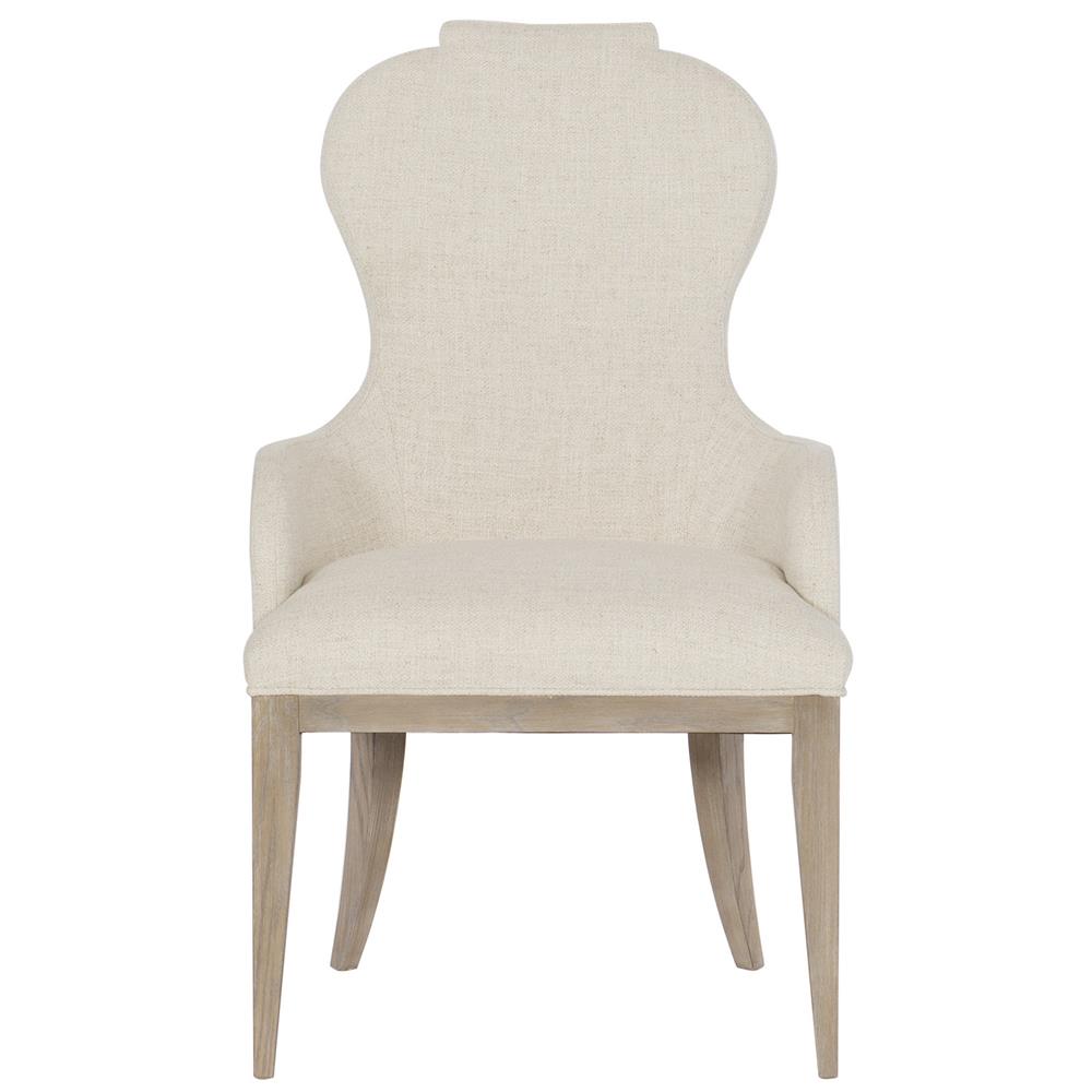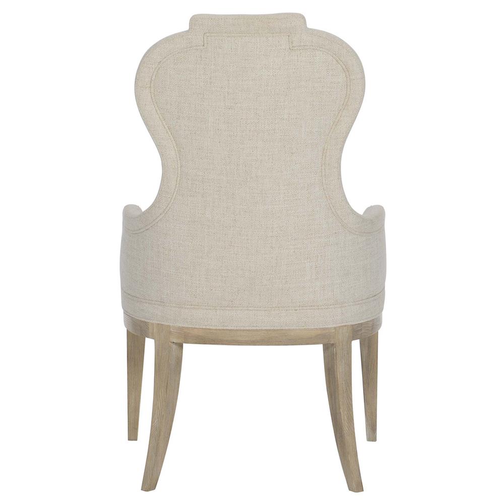 Sarabeth French Beige Upholstered Sandstone Brown Wood Rounded Dining Arm Chair