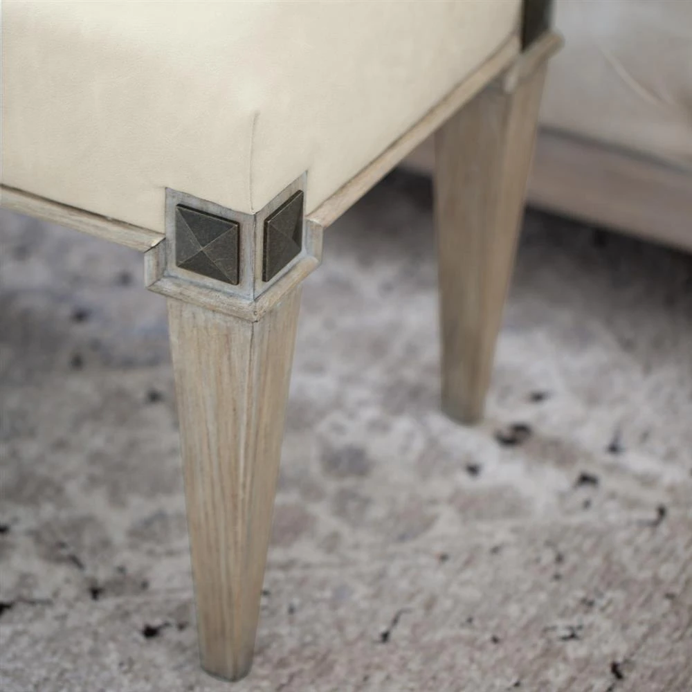 Sarabeth Updated Traditional Beige Faux Leather Cerused Oak Bench