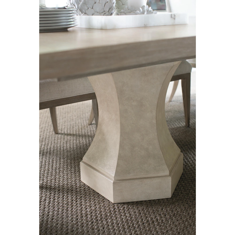 Sarabeth Brown Wood White Pedestal Rectangular Extendable Dining Table - 92-132"W