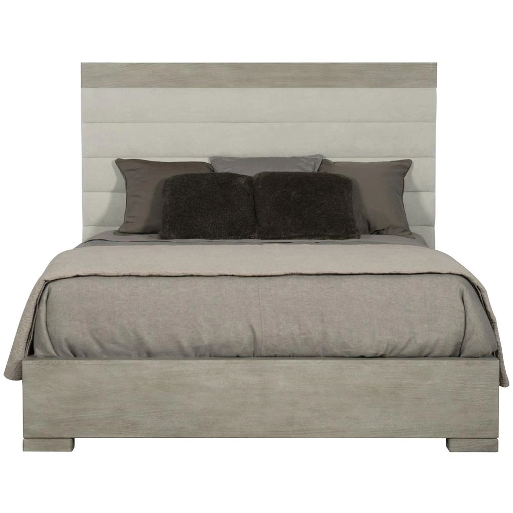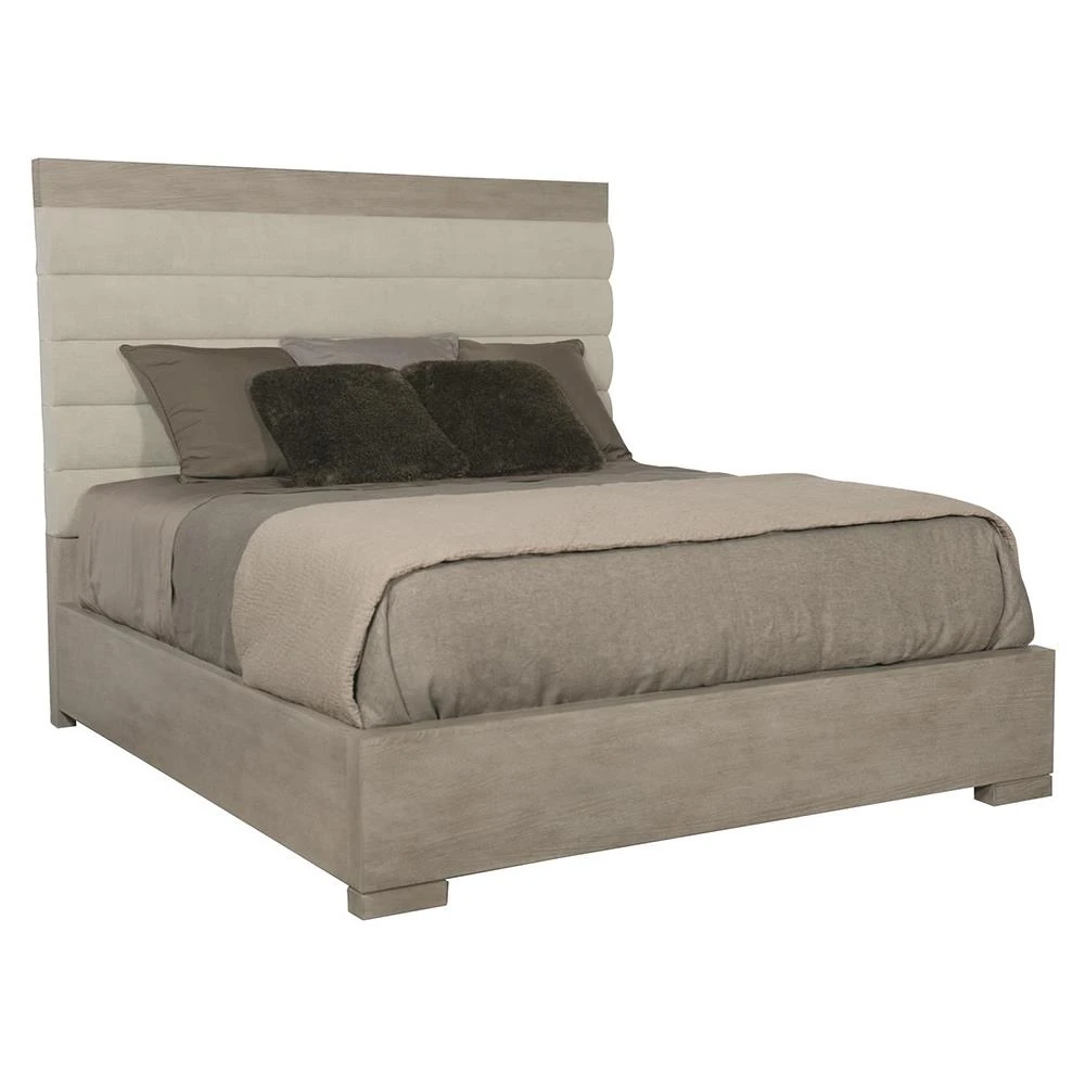 Landon Modern Masculine Beige Upholstered Channel Grey Wood Bed - King