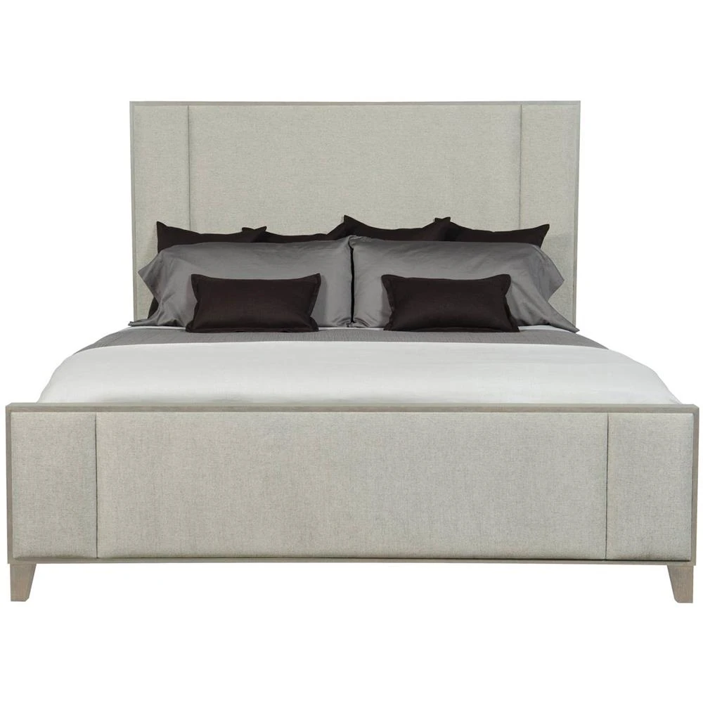 Landon Modern Masculine Beige Upholstered Panel Grey Wood Bed - King