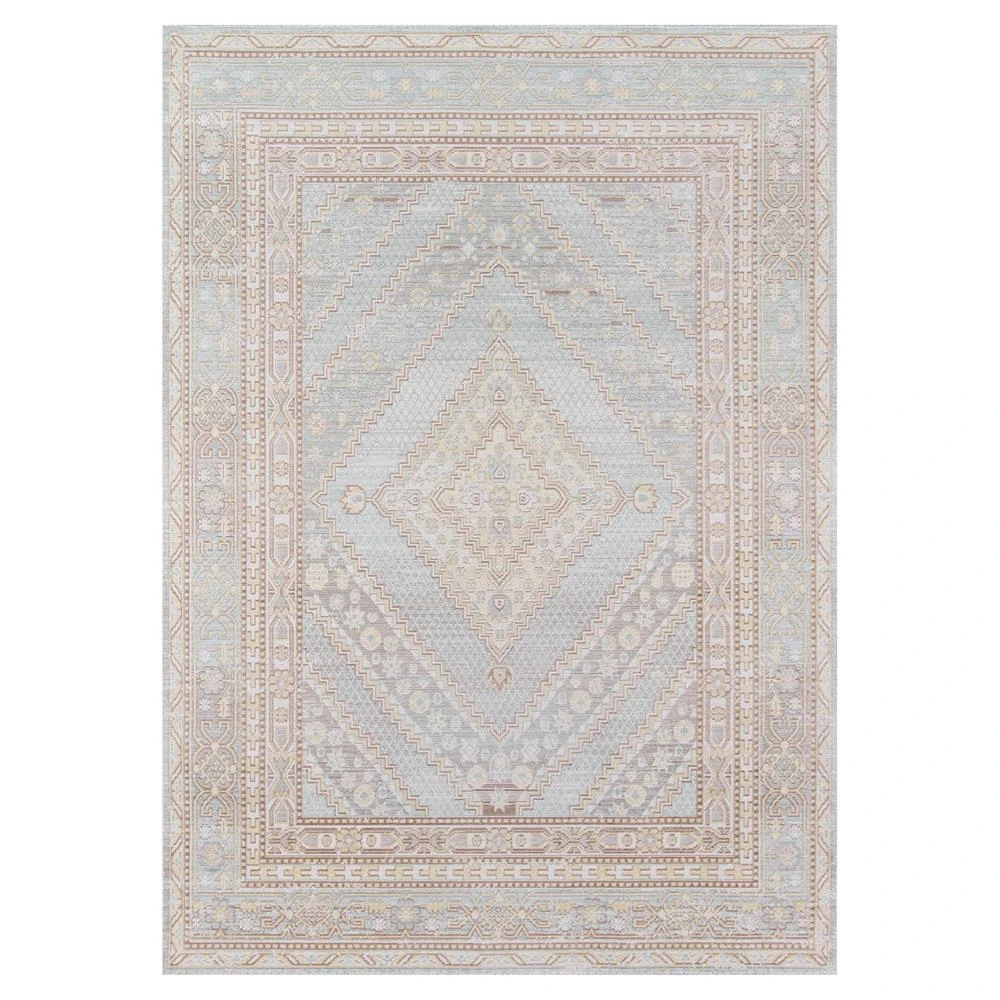 A central medallion and ornamental border in soft shades of blue and beige give the 4G??x6G?? Esme rug its elegantly patterned look. Po ... more