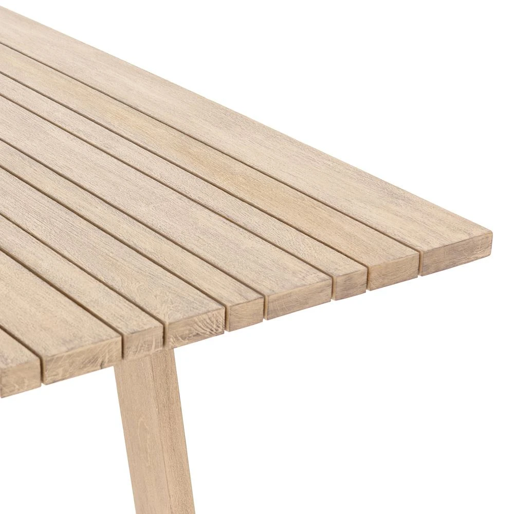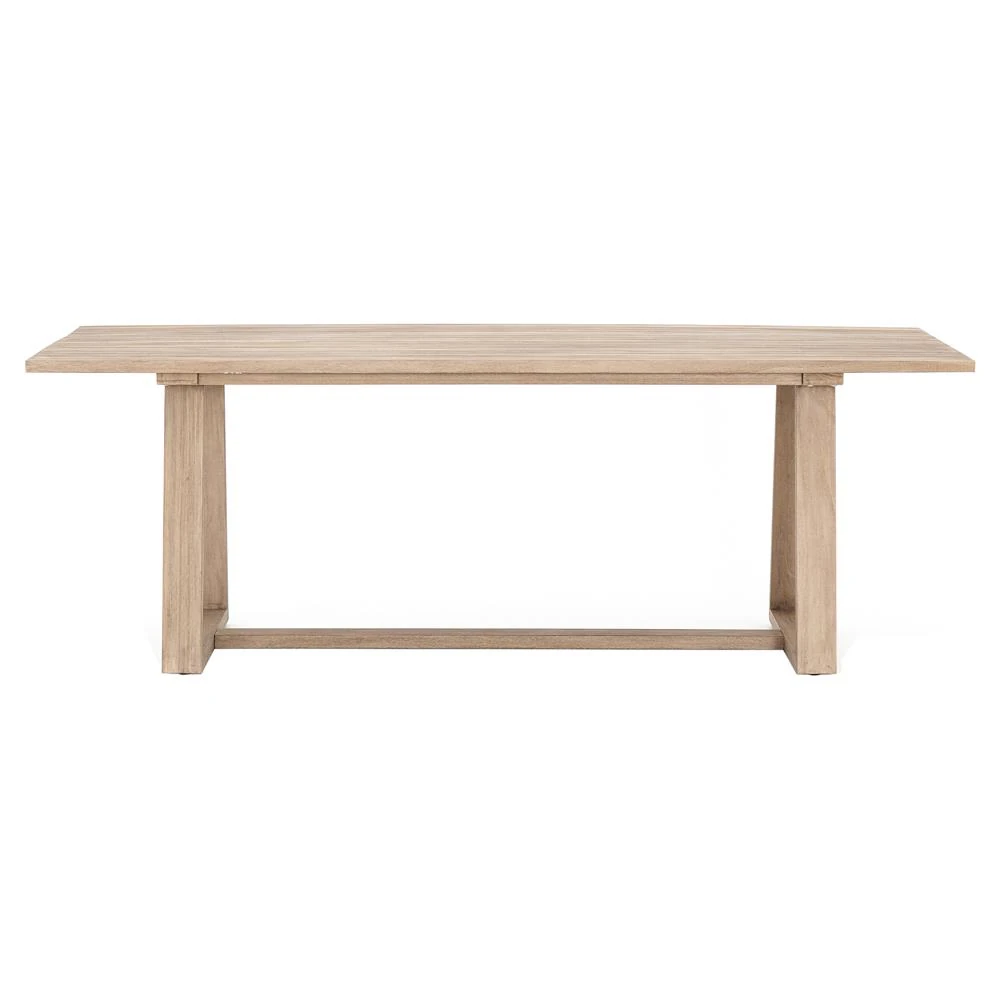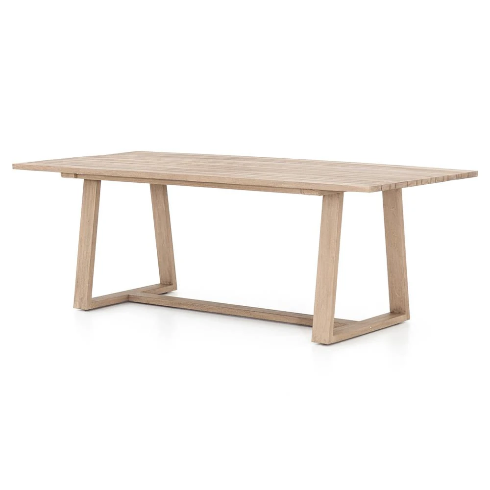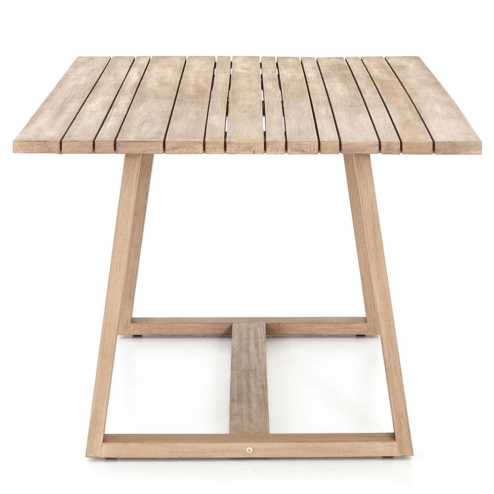 Cody Coastal Beach Angled Base Rectangular Washed Brown Teak Outdoor Dining Table - 86.5"W
