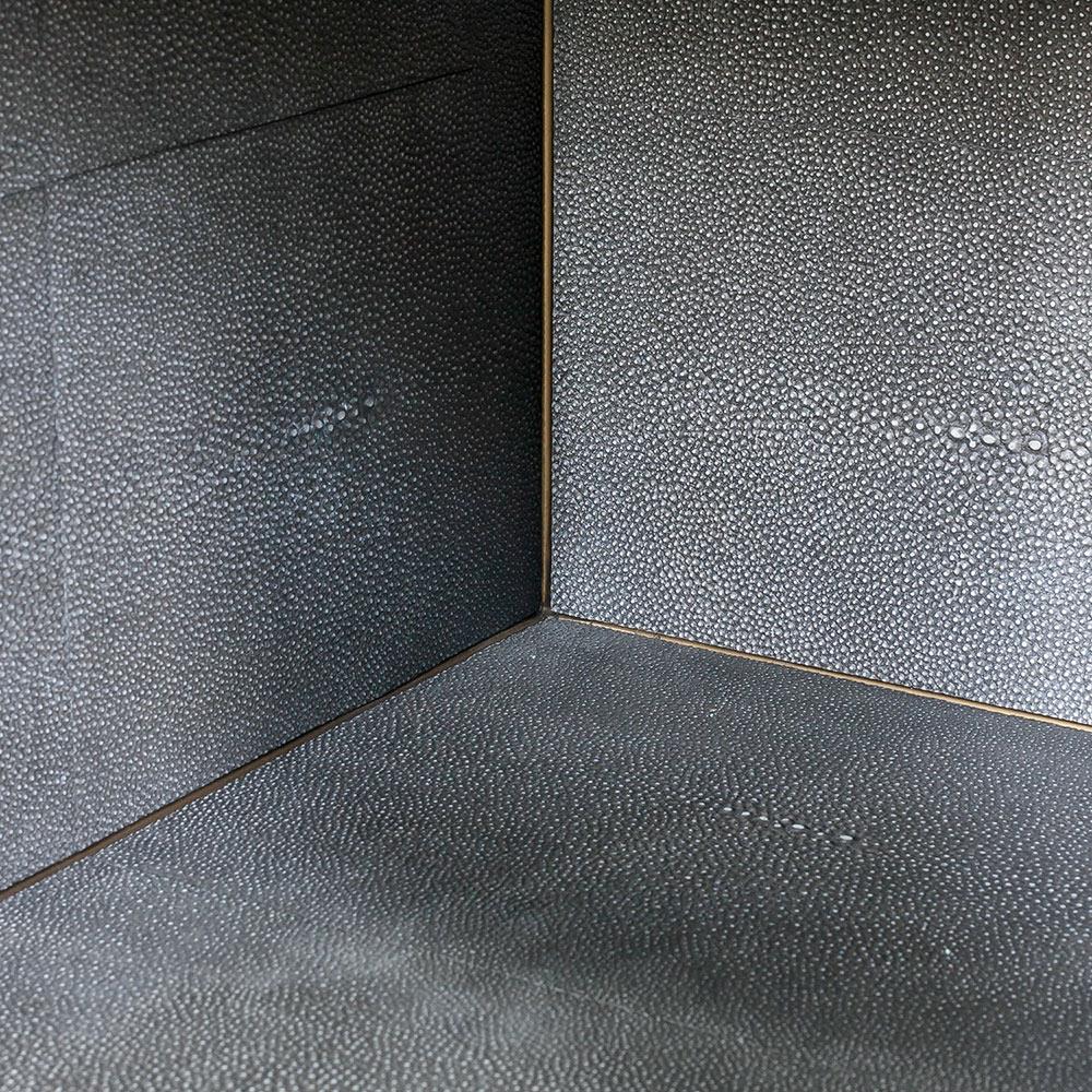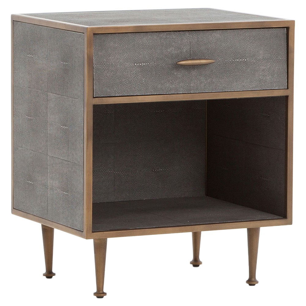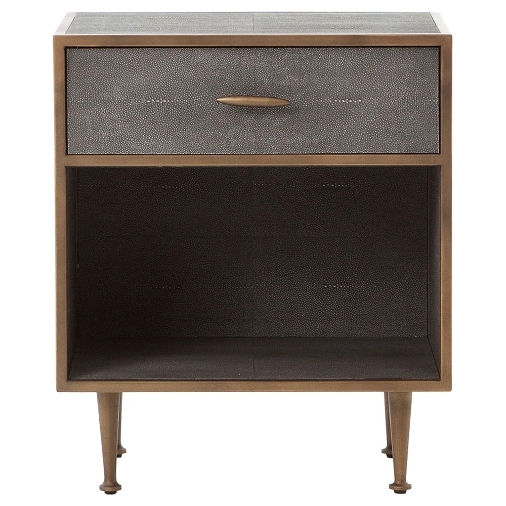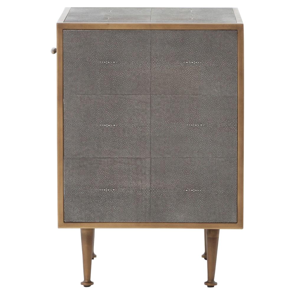 Ena Mid Century Grey Shagreen Wrapped Brass Accent Nightstand