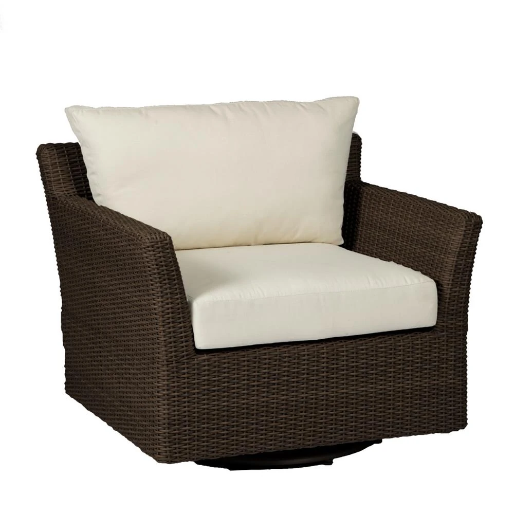 Club Woven Brown Wicker White Upholstered Outdoor Swivel Glider Chair
