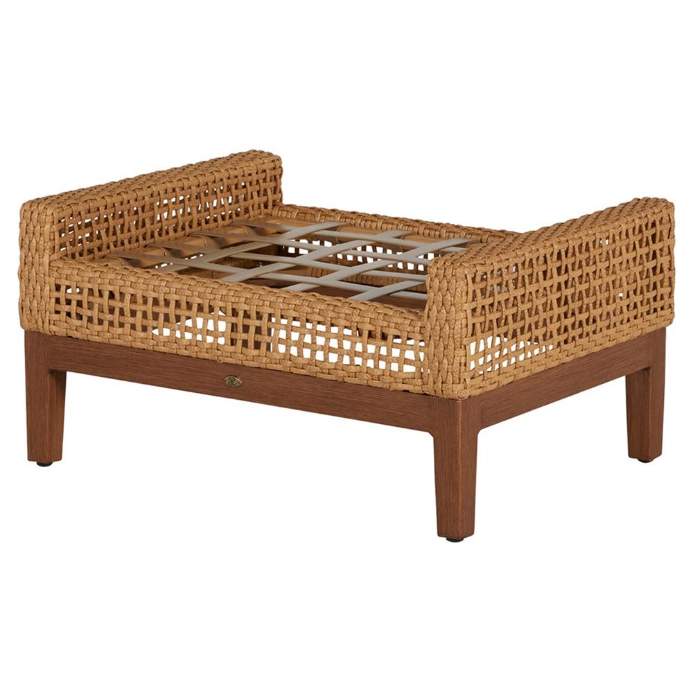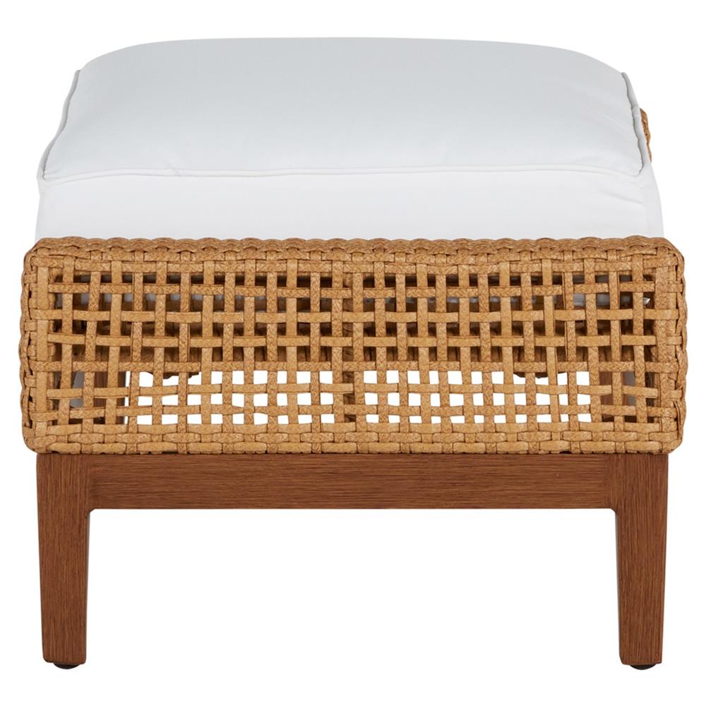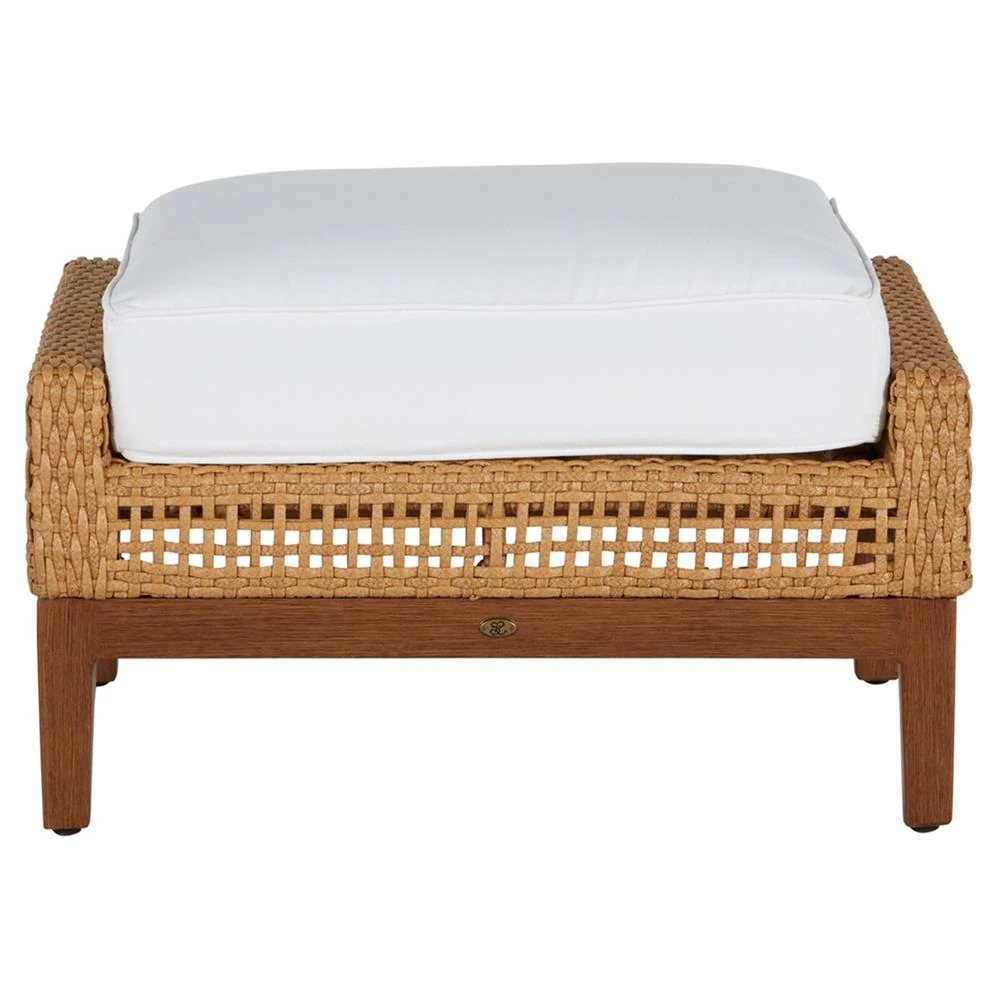 • Club Woven Coastal Beach Brown Walnut Outdoor Ottoman|Kathy Kuo Home