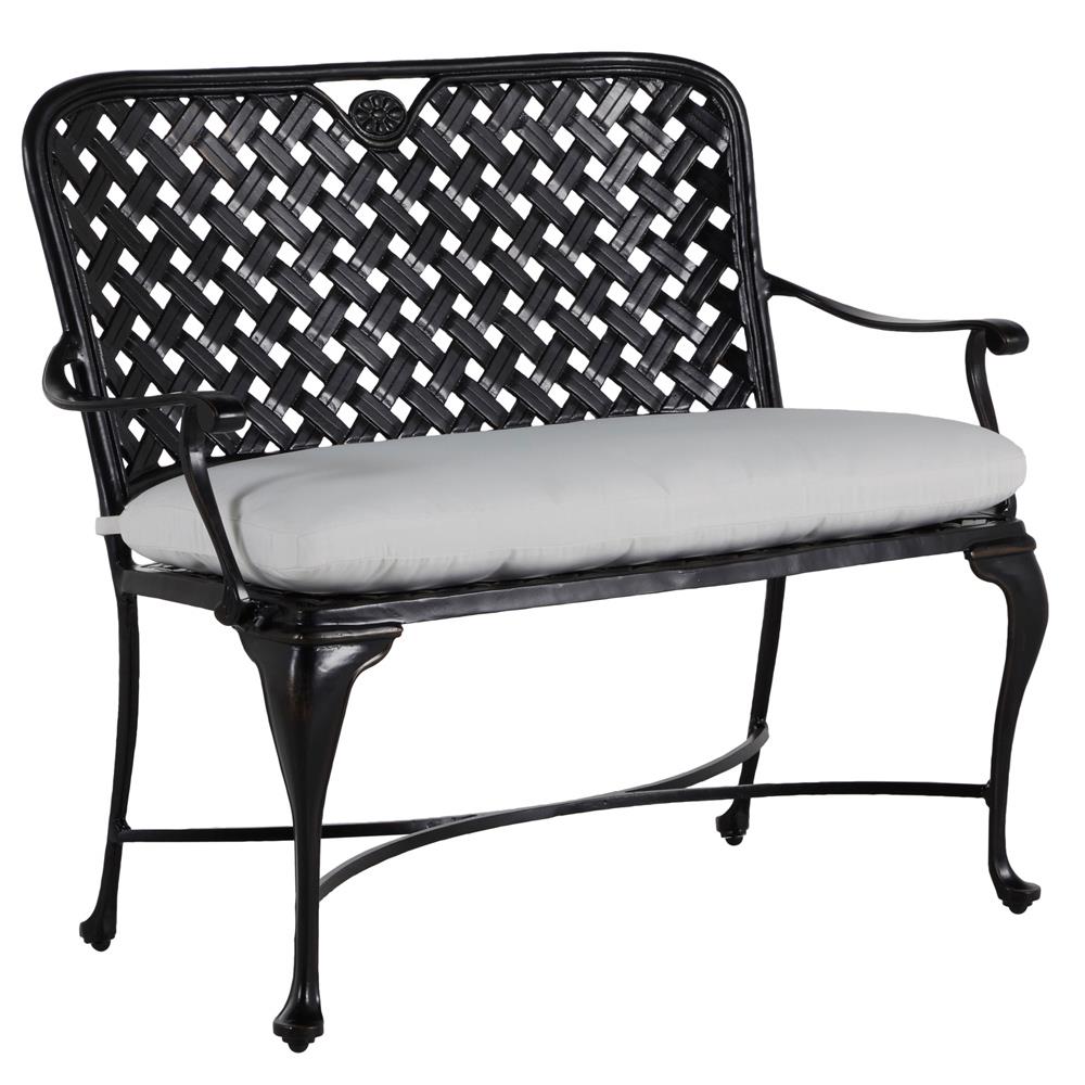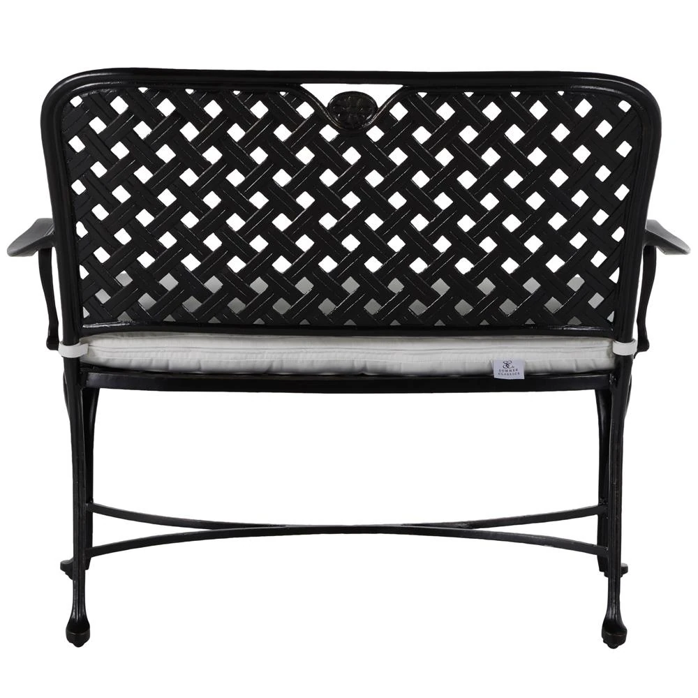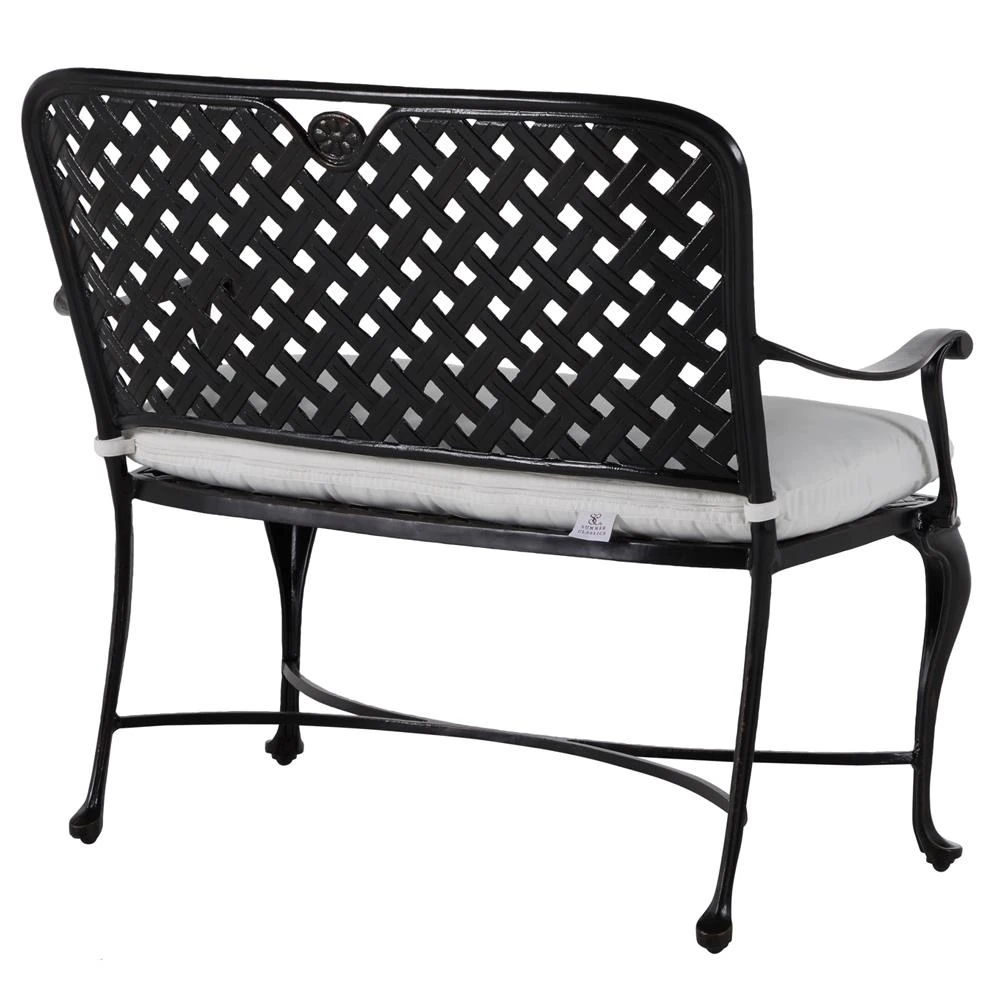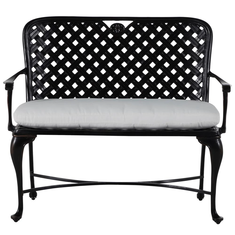 • Aurore French Beige Sunbrella Cushion Metal Outdoor Garden Bench|Kathy Kuo Home