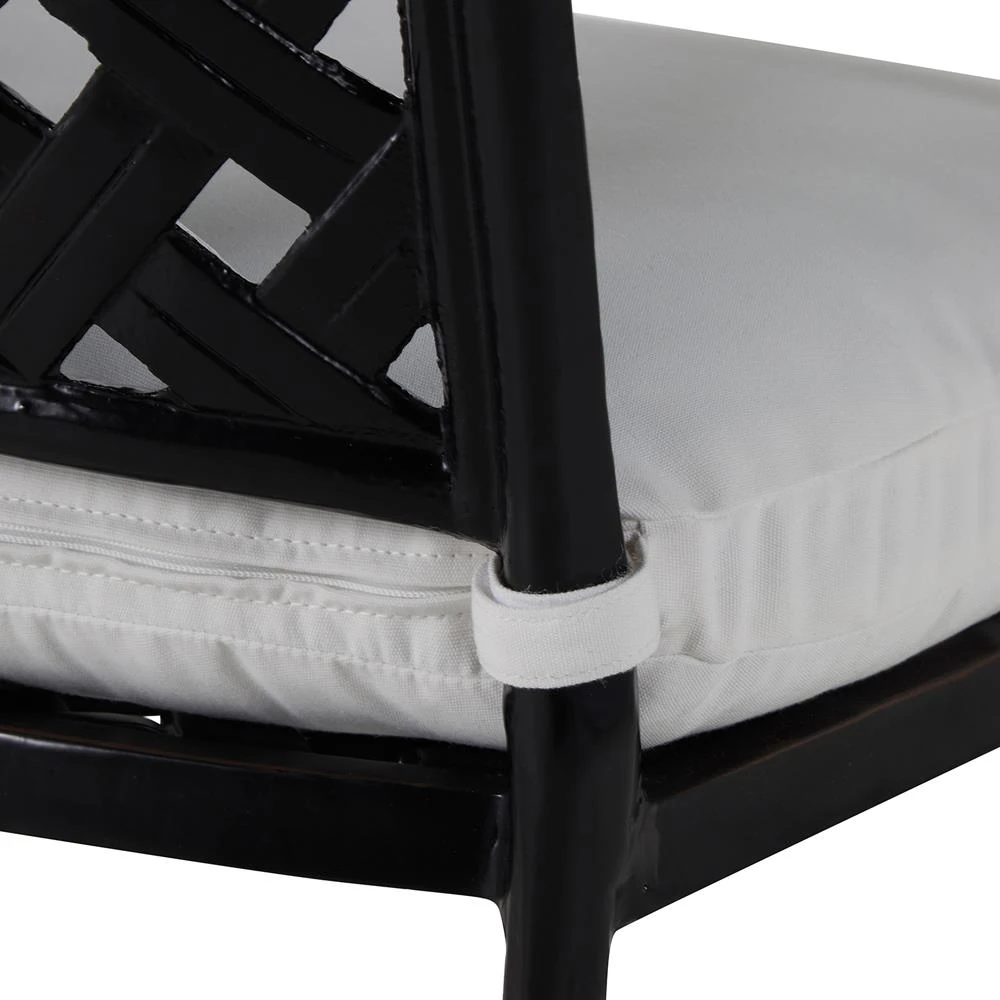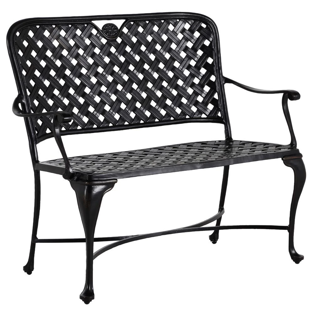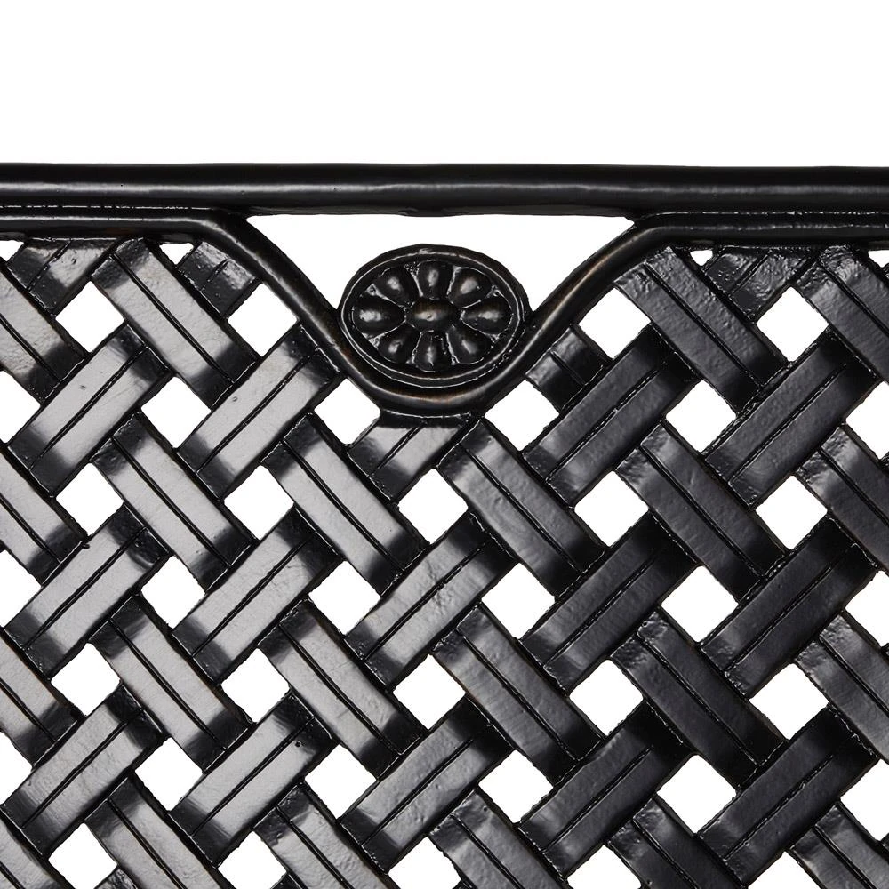 • Lily French Country Black Woven Rattan Outdoor Dining Bench|Kathy Kuo Home