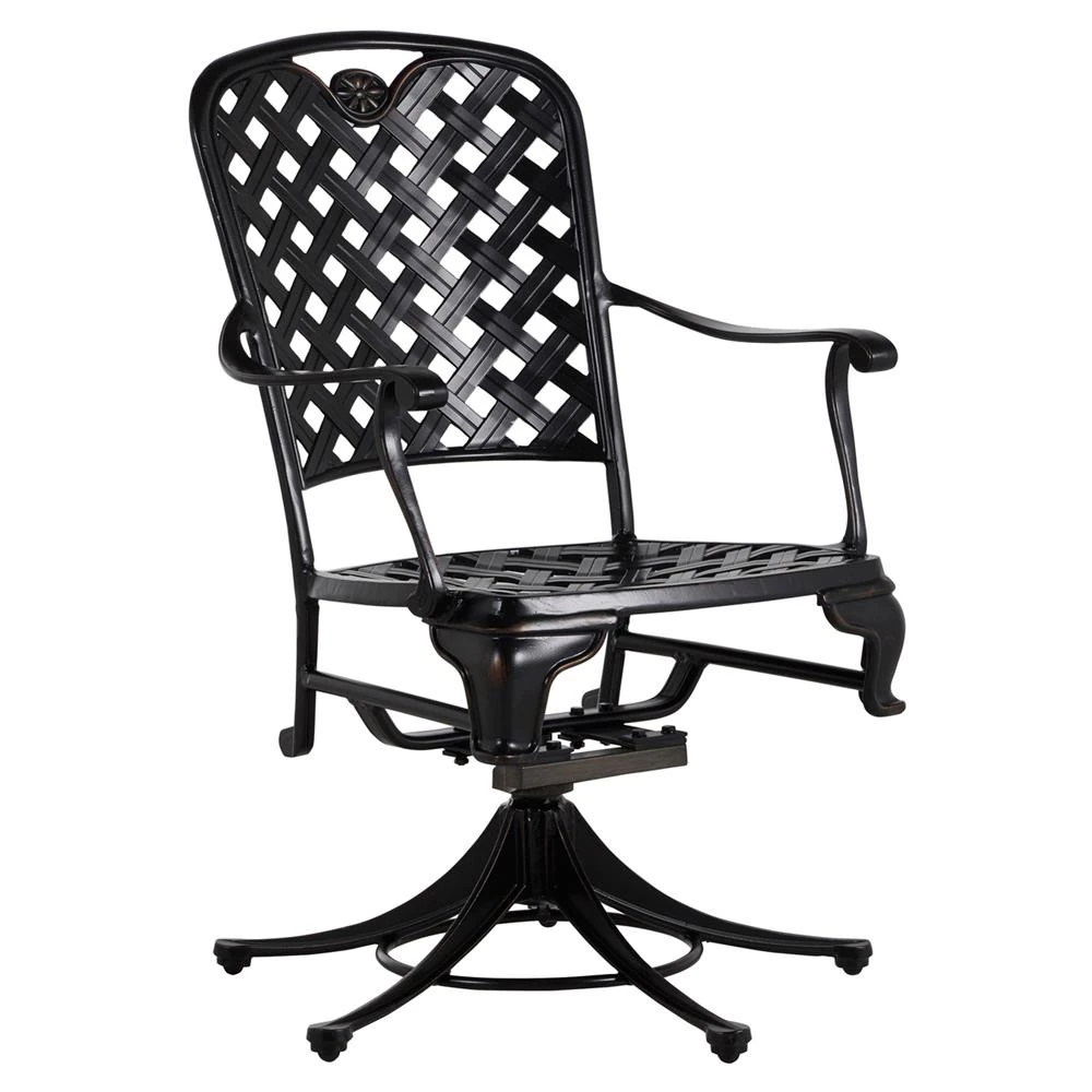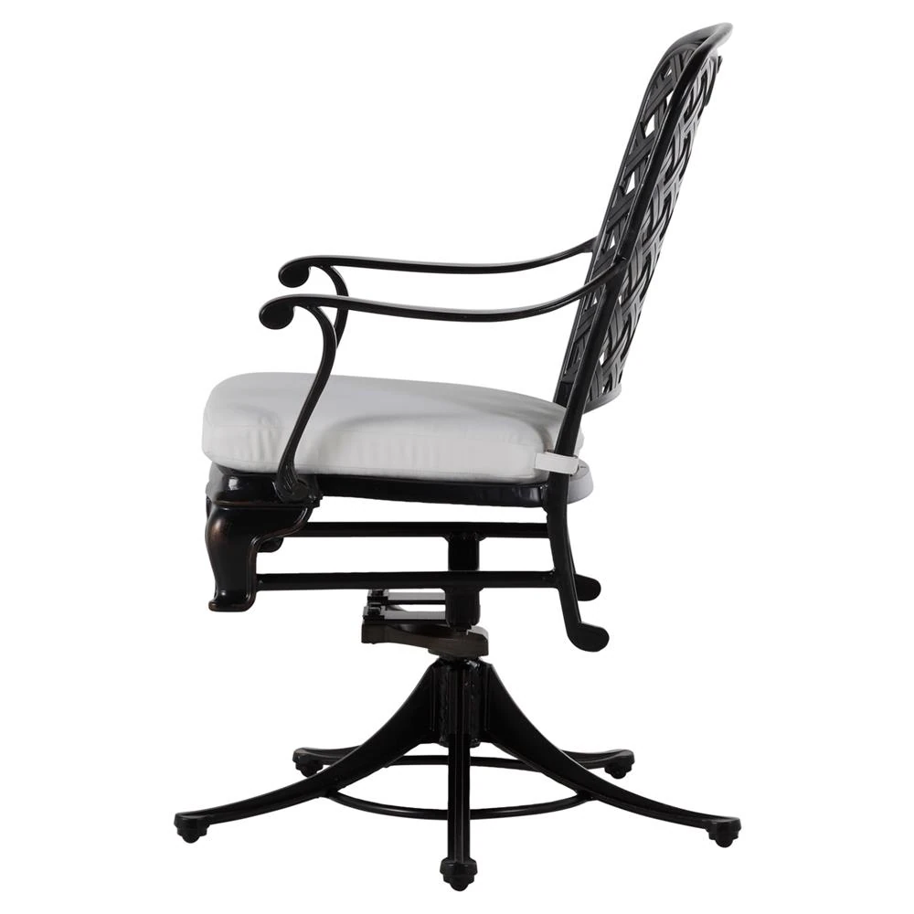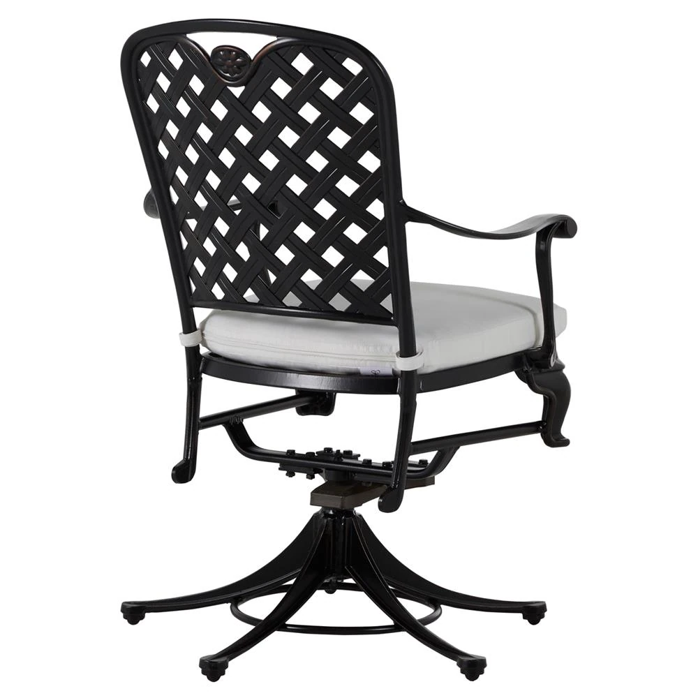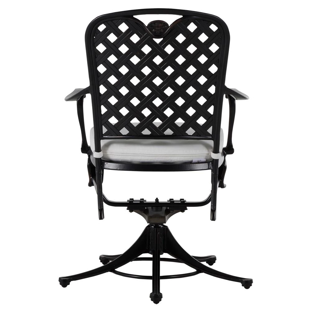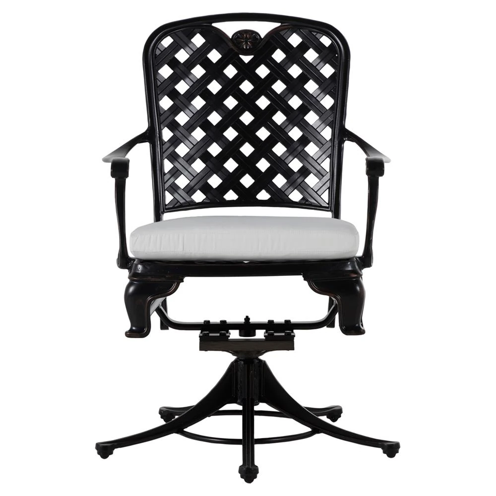 • Alexander Coastal Off White Upholstered Black Wicker Outdoor Swivel Arm Chair|Kathy Kuo Home