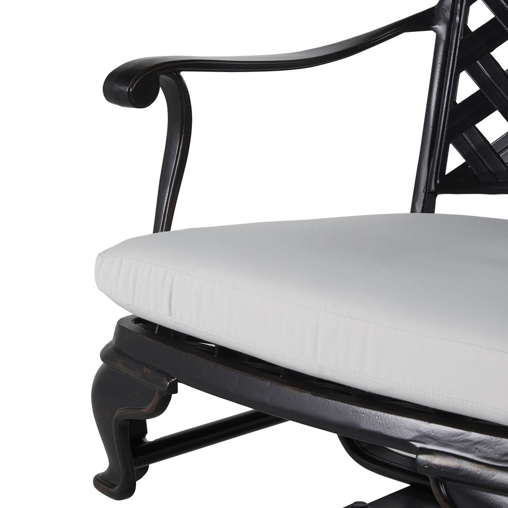 • Includes a non-welted white seat cushion (Fabric: Natural White Outdura. Fabric content: 100% solution dyed acrylic)