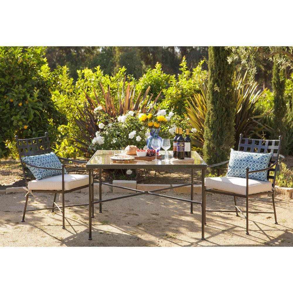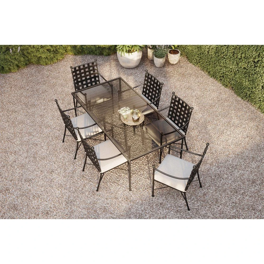 Aurore French Country Glass Top Black Metal Outdoor Dining Table - 84"W