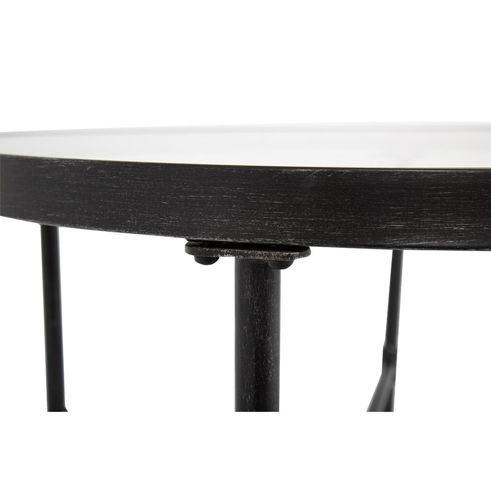 Aurore French Country Glass Top Black Metal Outdoor Side End Table