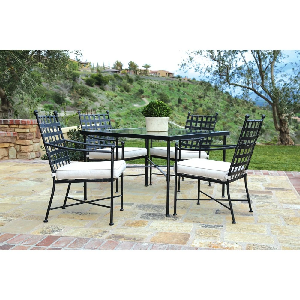 Aurore French Country Glass Top Metal Square Outdoor Dining Table - 44"W