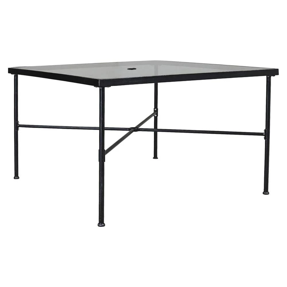 Emeline Glass Black Iron Square Outdoor Dining Table - 48"