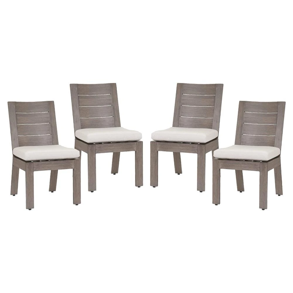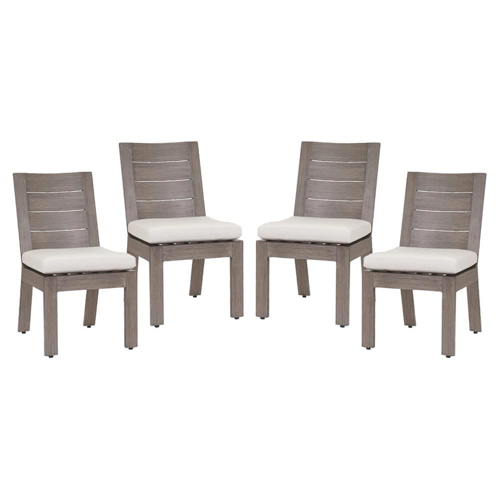Ezra Modern Taupe Grey Aluminum Beige Outdoor Dining Side Chair