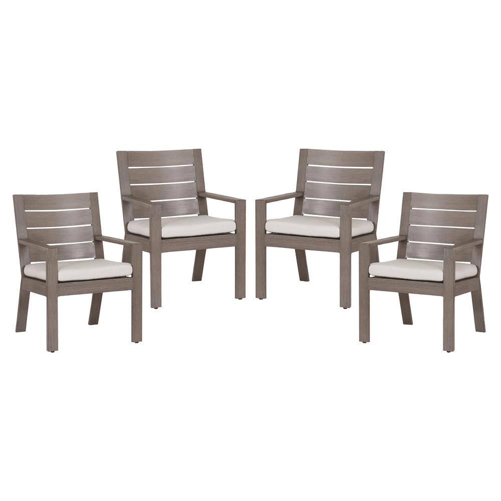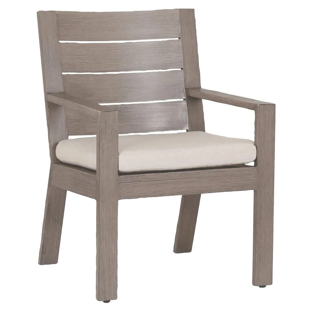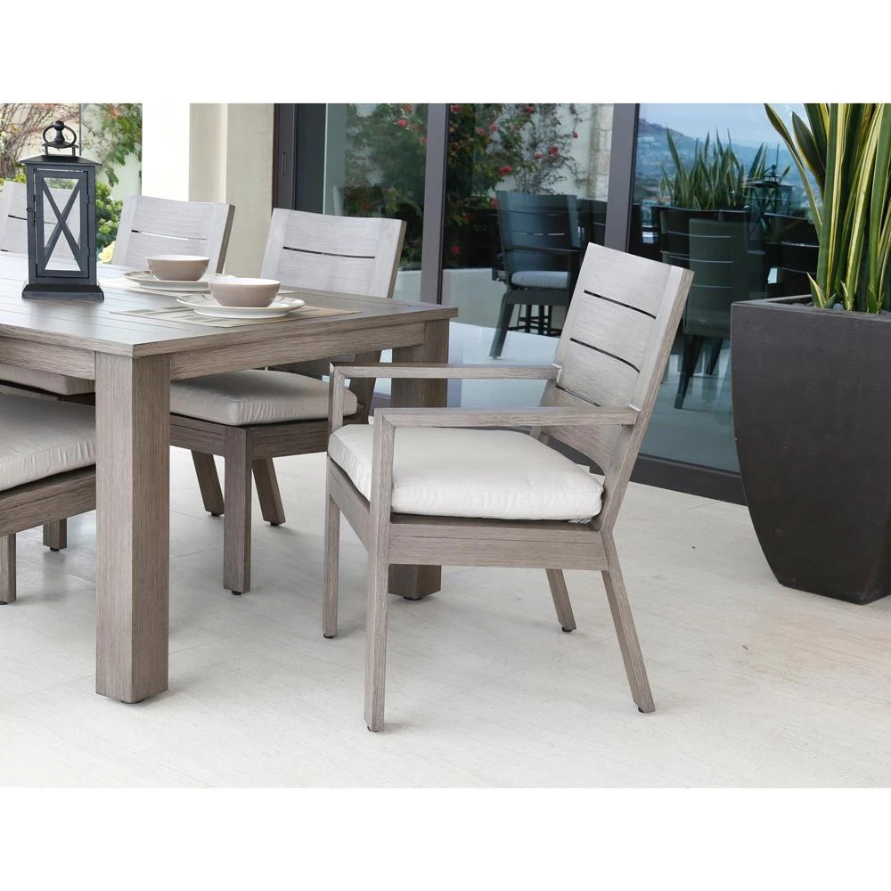 Ezra Modern Taupe Grey Aluminum Beige Outdoor Dining Arm Chair