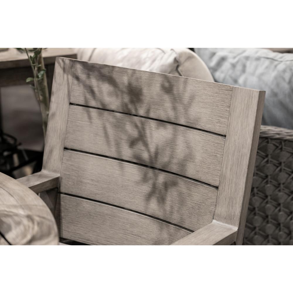 The Ezra dining armchair refreshes any indoor or outdoor dining space with modern elegance. Its durable, powder-coated aluminum frame i ... more