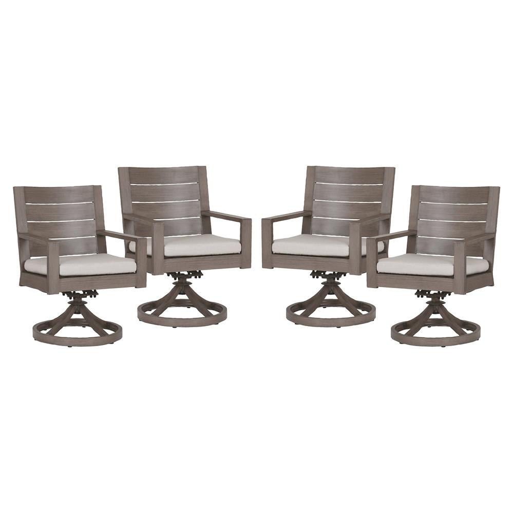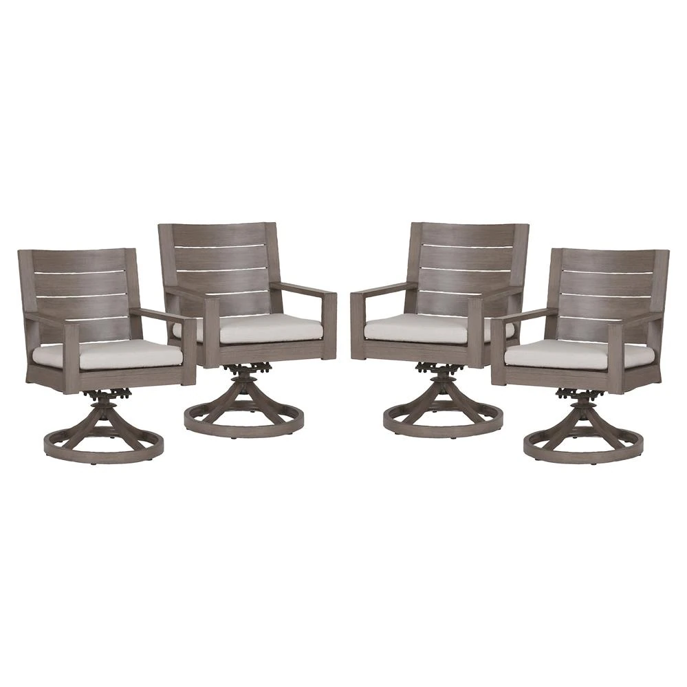Ezra Modern Taupe Grey Aluminum Beige Outdoor Swivel Arm Chair